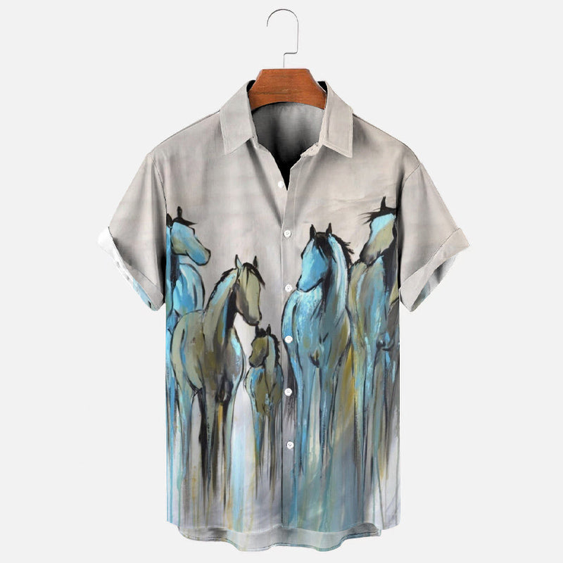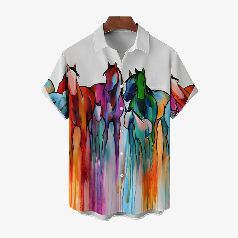 Colorful Horse Art Print Casual Oversized Short Sleeve Shirt 2407002251