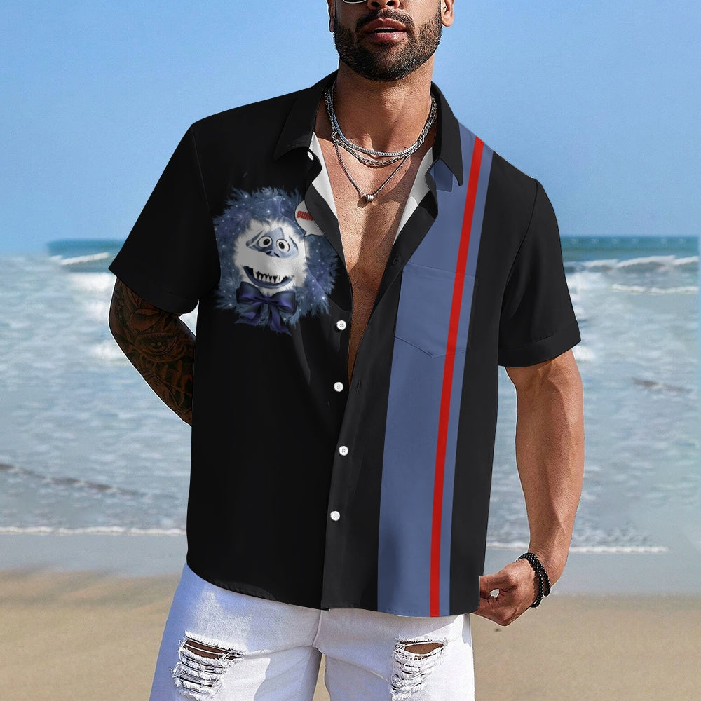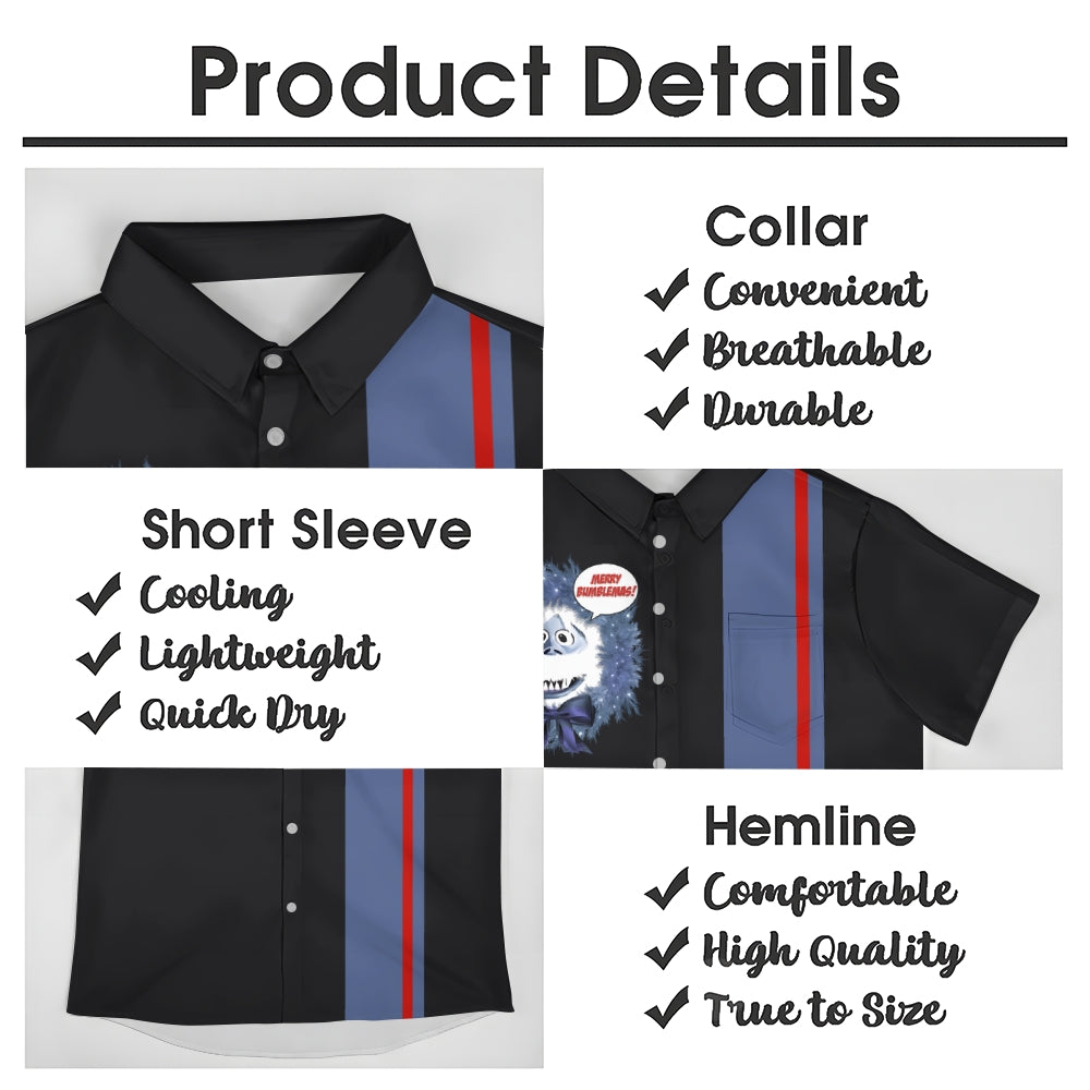 Merry Christmas Snow Monster Print Short Sleeve Bowling Shirt 2412002818