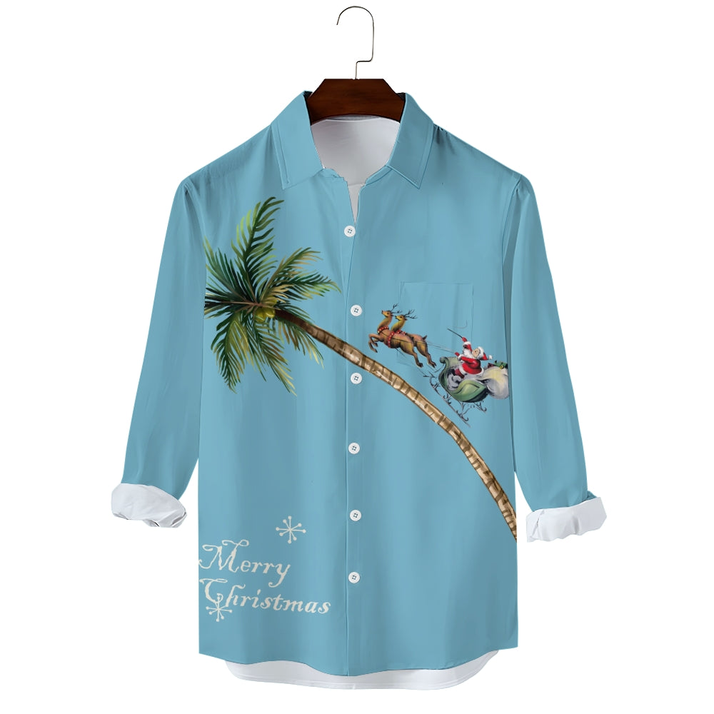 Men's Christmas Print Long-sleeved Shirt 2409005628