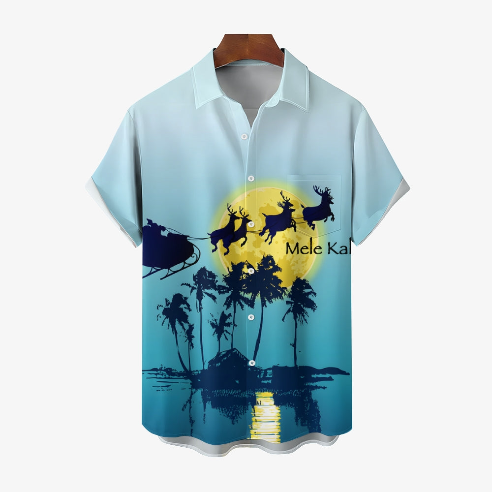 Men's Santa Claus and Elk Casual Short Sleeve Shirt 2411004006