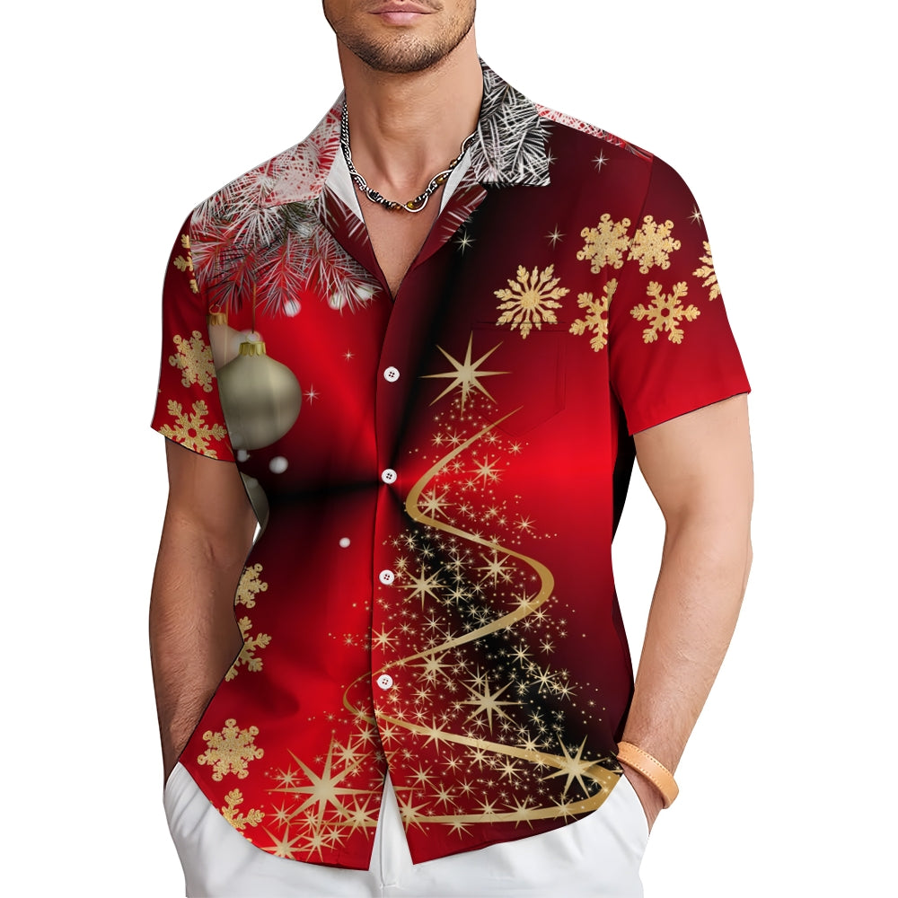 Christmas Tree Decorations Print Casual Short Sleeve Shirt 2412003168