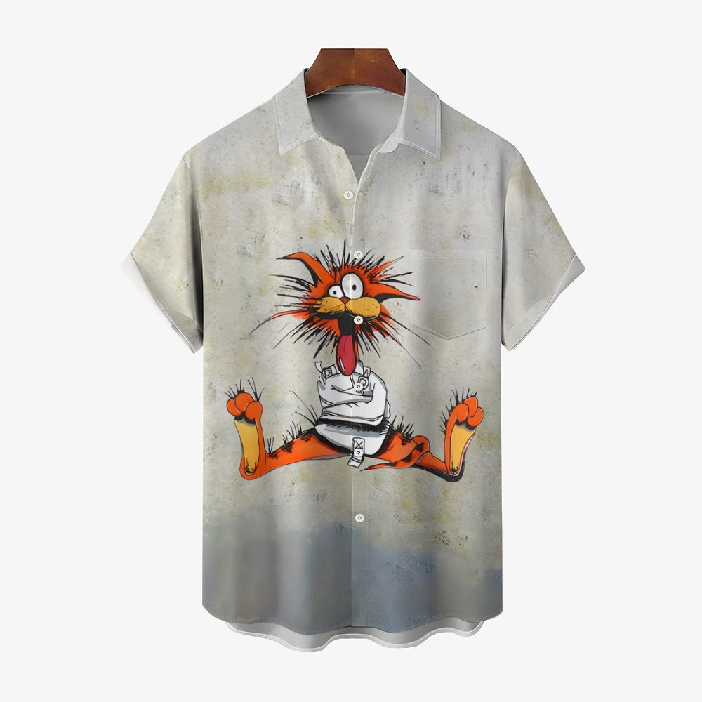 Men's Classic Retro Cartoon Print Short Sleeve Shirt 2407001906