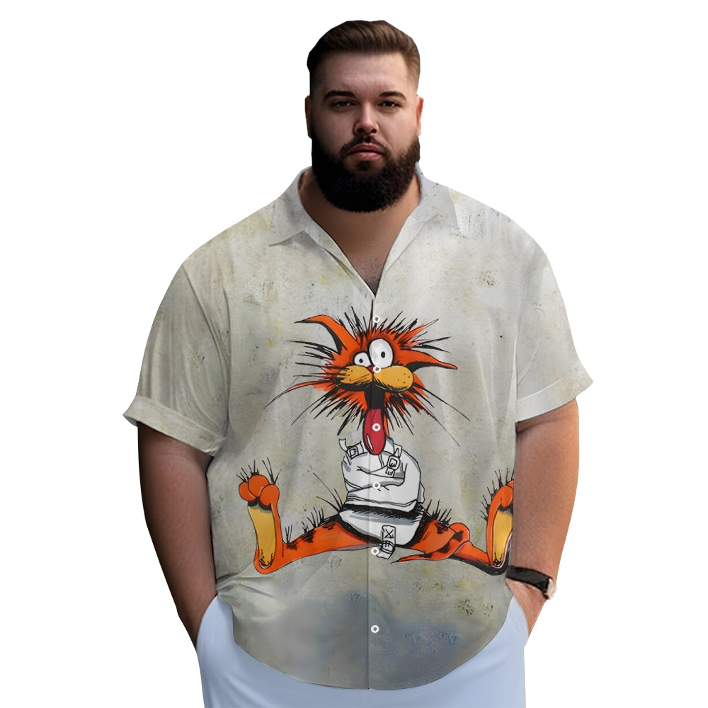Men's Cartoon Character Print Large Bamboo Linen Short Sleeve Shirt 2406000556