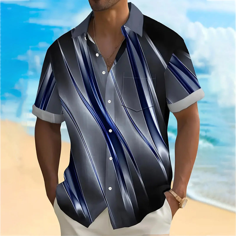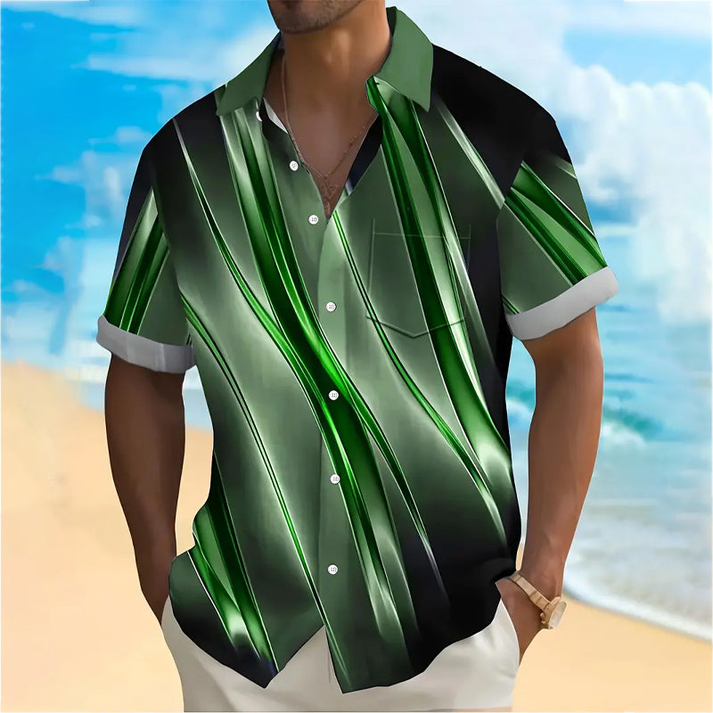 Men's 3D Abstract Pattern Print Short Sleeve Lapel Shirt 2407004876