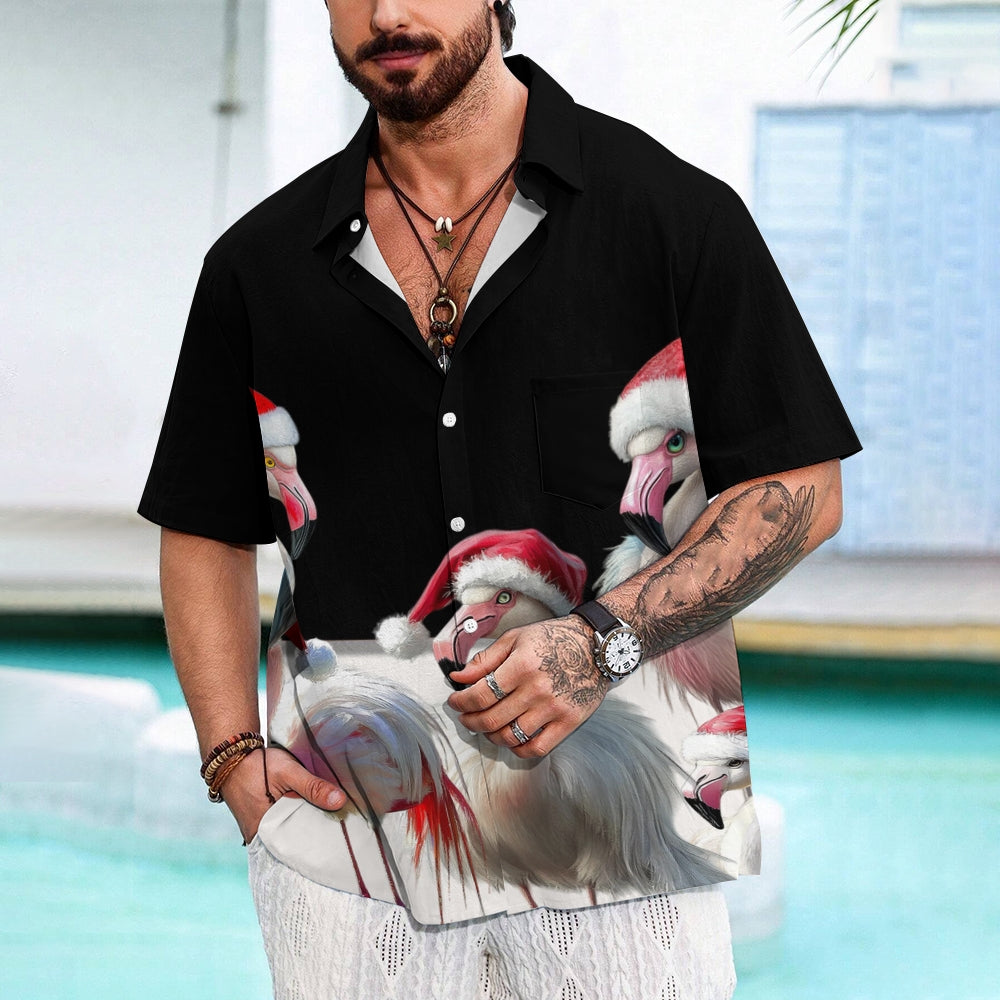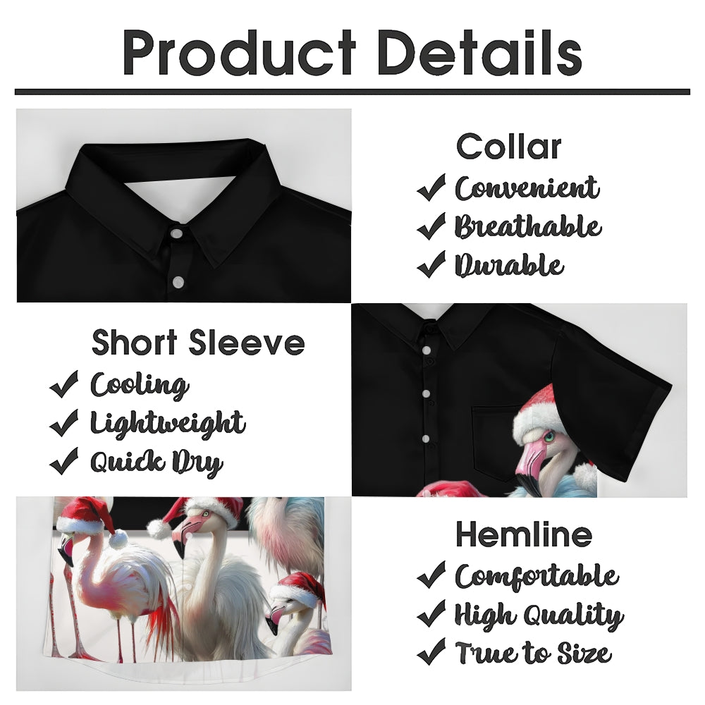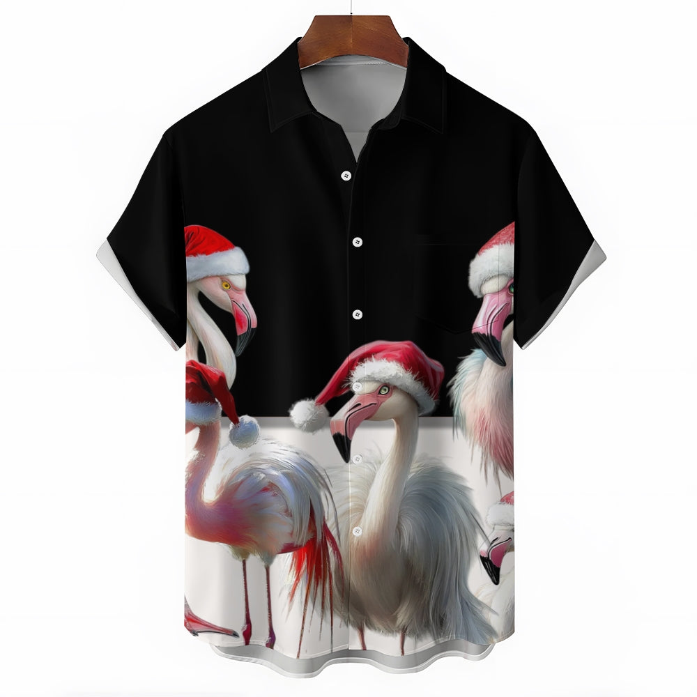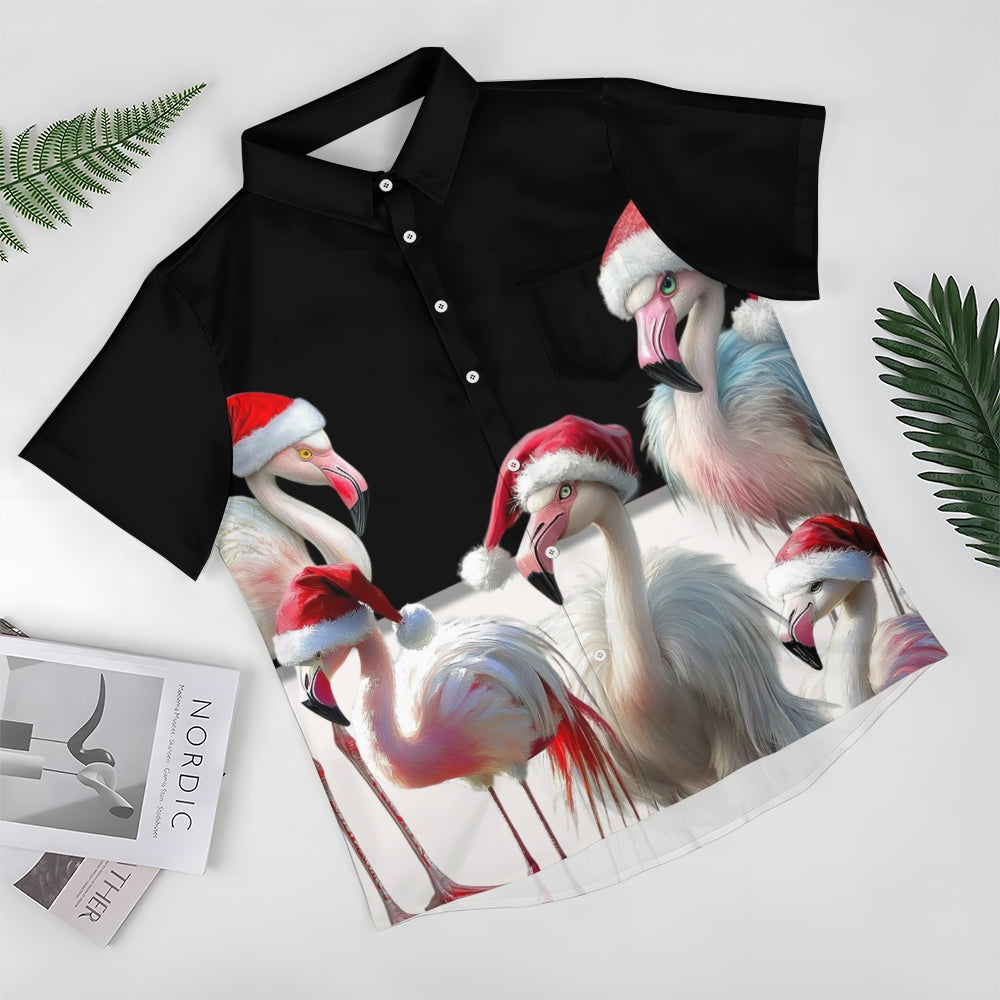 Christmas Flamingo Print Casual Short Sleeve Shirt 2411008517