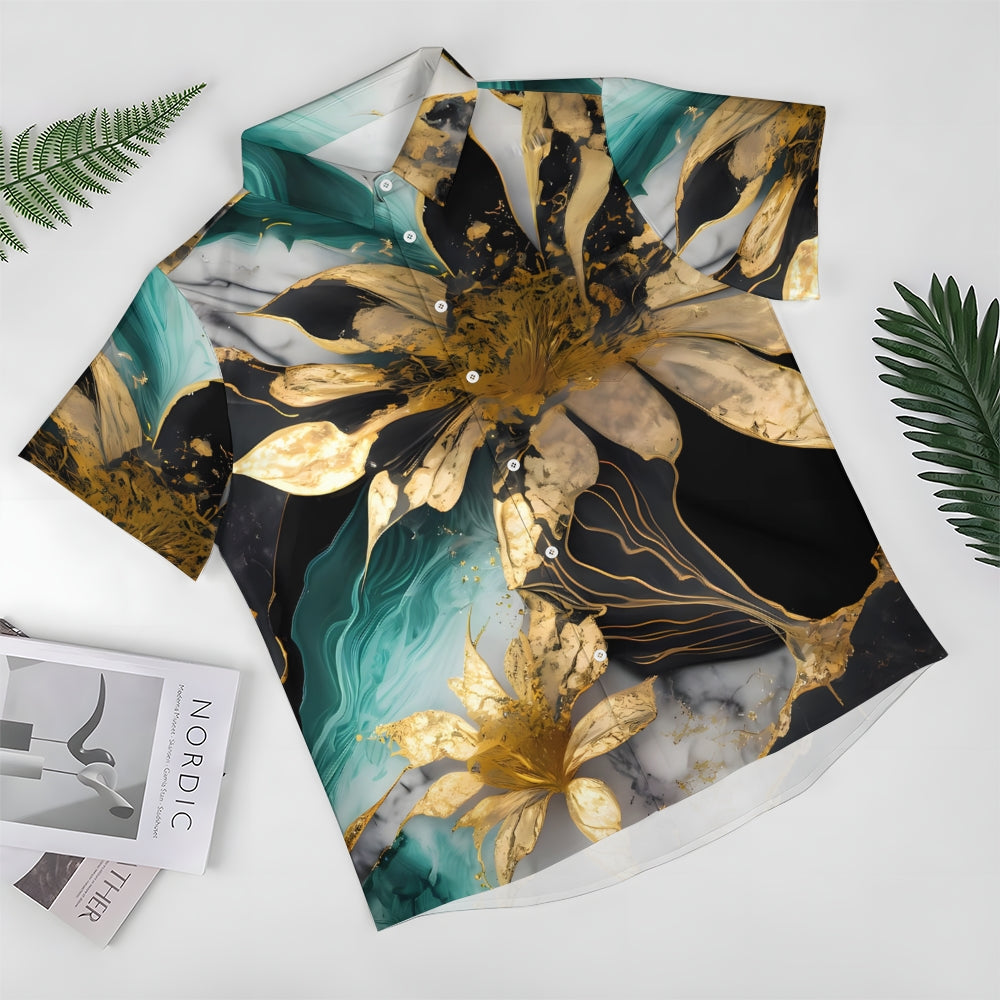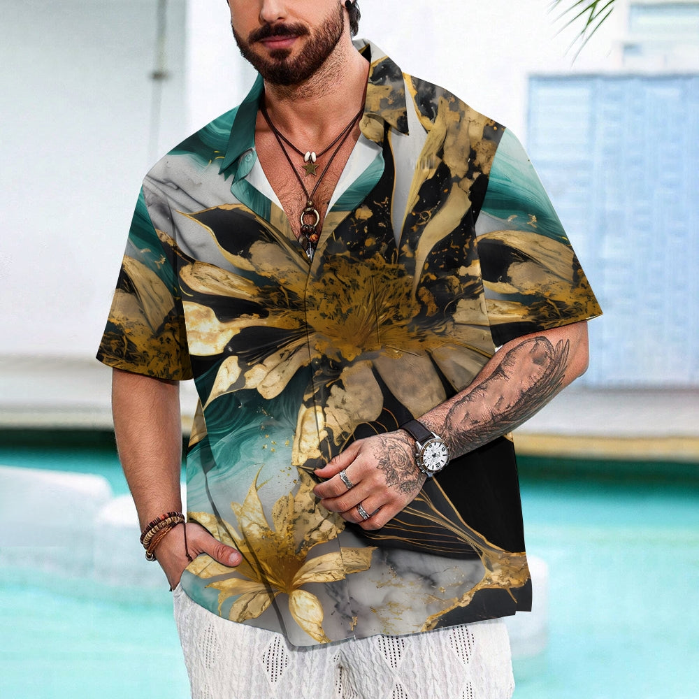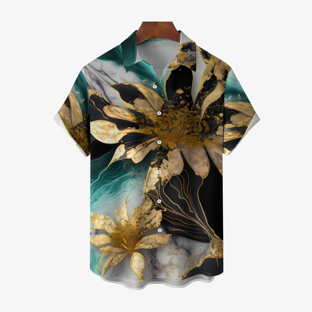 Hawaiian Gilded Art Floral Print Men's Button Pocket Short Sleeve Shirt 2405000201
