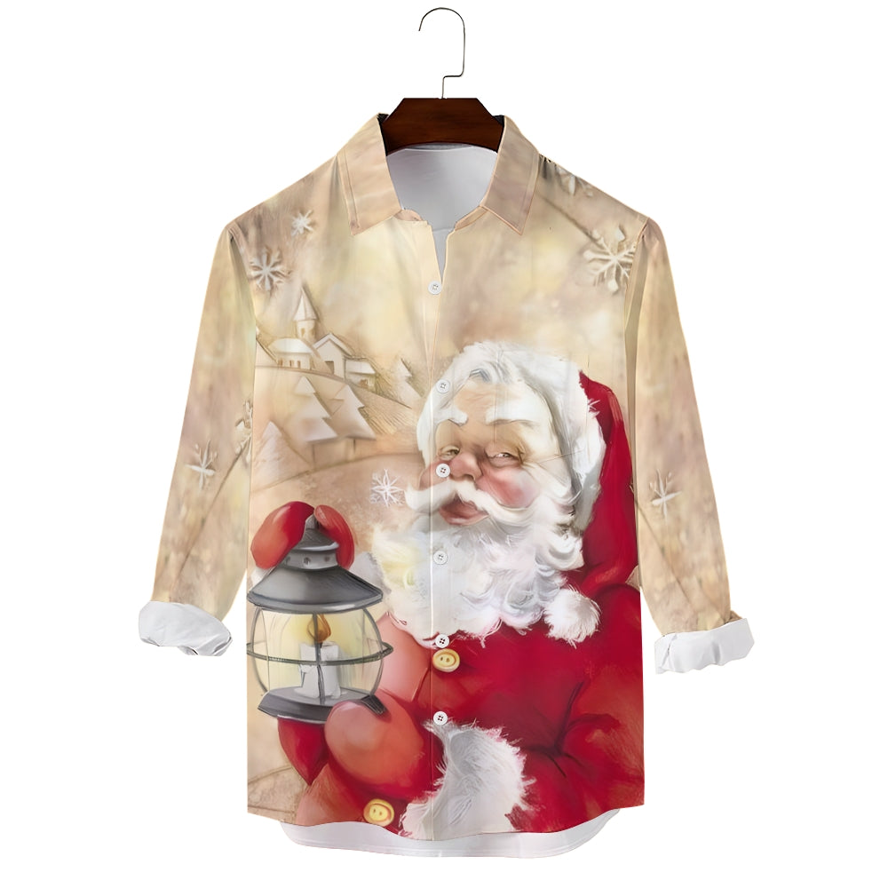Men's Christmas Santa Claus Printed Long Sleeve Shirt 2411002932