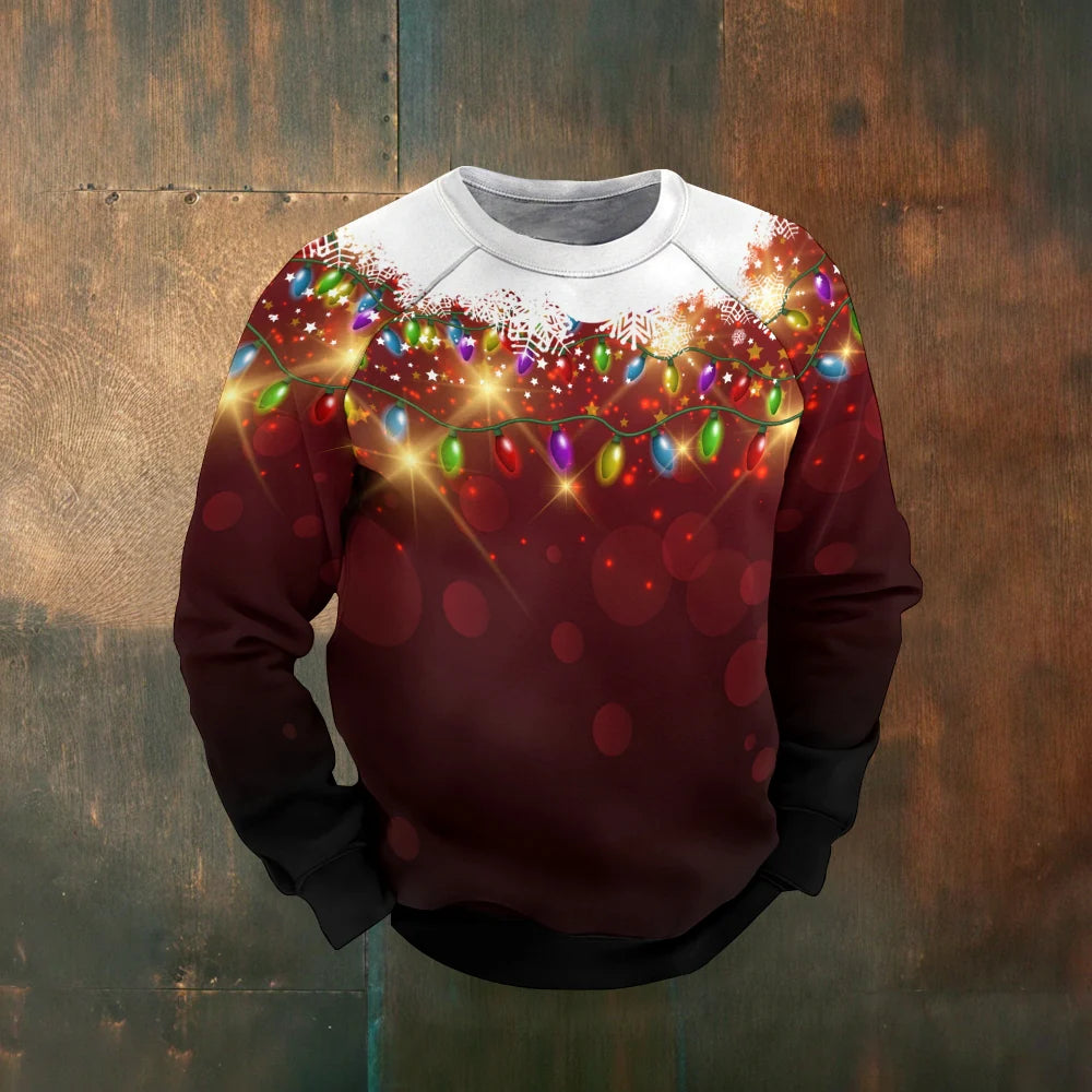 Men's Raglan Holiday Lights Print Long Sleeve Sweatshirt 2411002399