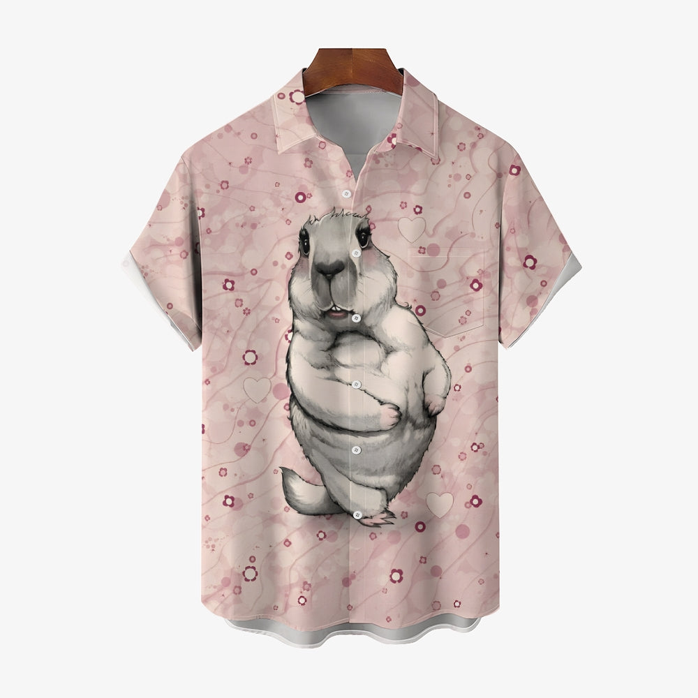 Groundhog Day Pink Print Casual Short Sleeve Shirt 2412003849