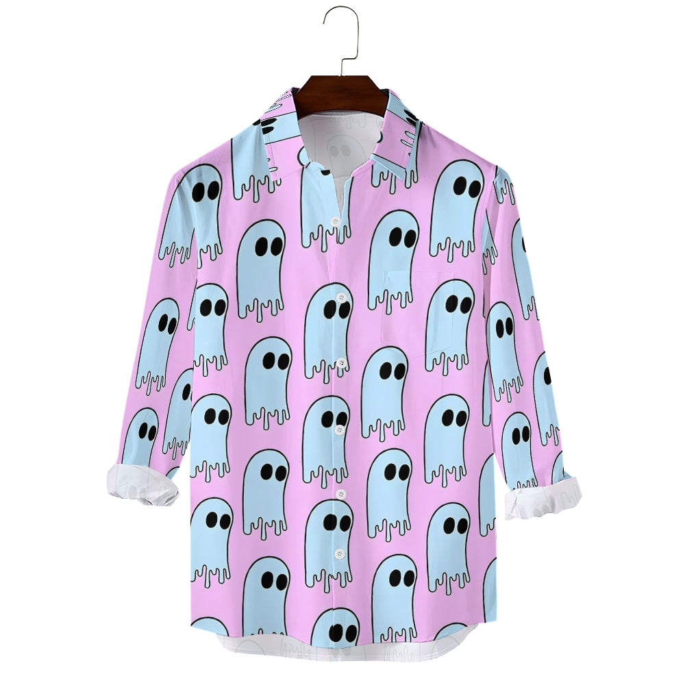 Retro Blue Purple Ghost Print Long Sleeve Shirt 2407005371