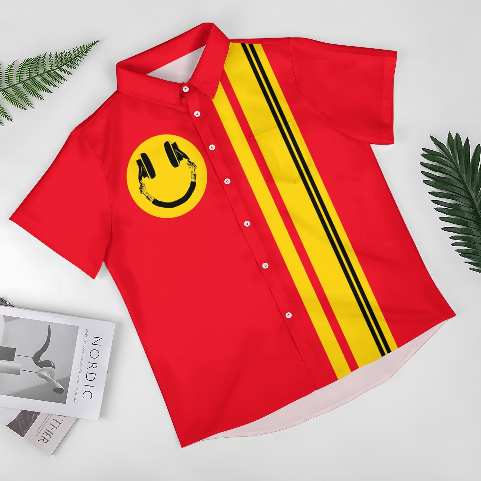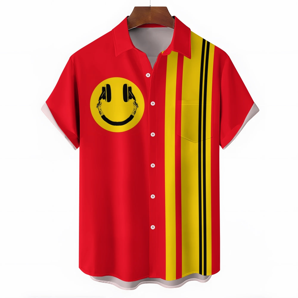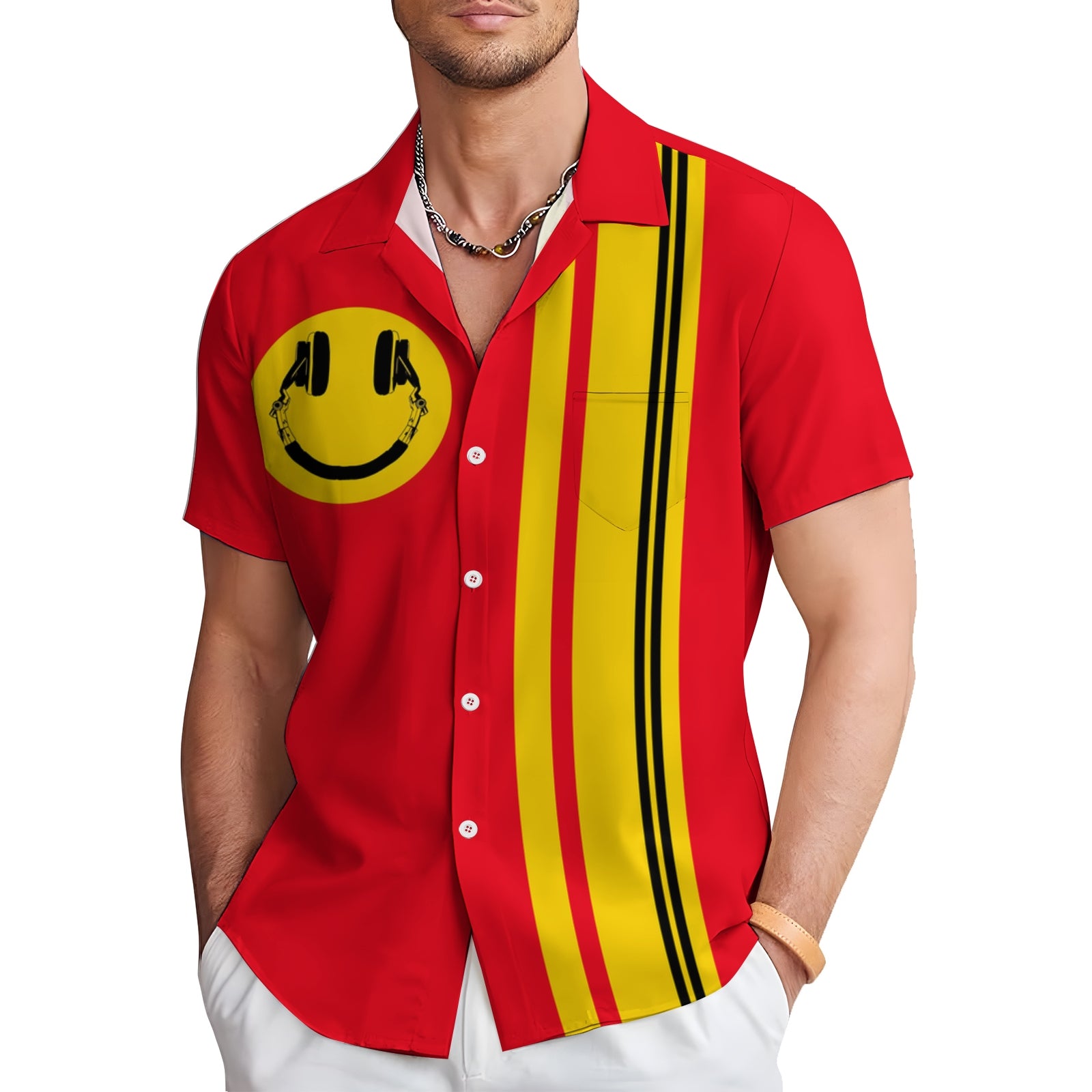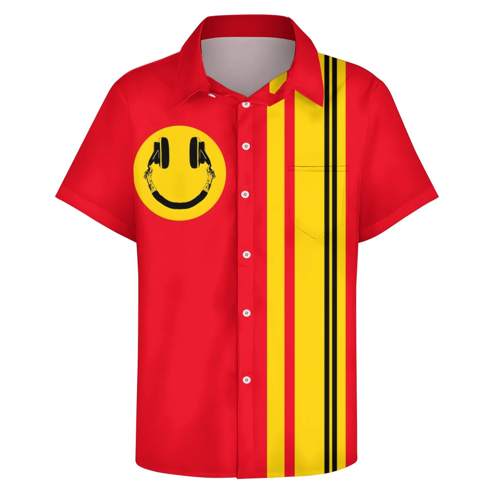 Funny Smiling Headphone Bowling Shirt Plus Size Casual Short Sleeve Shirt 2404000641