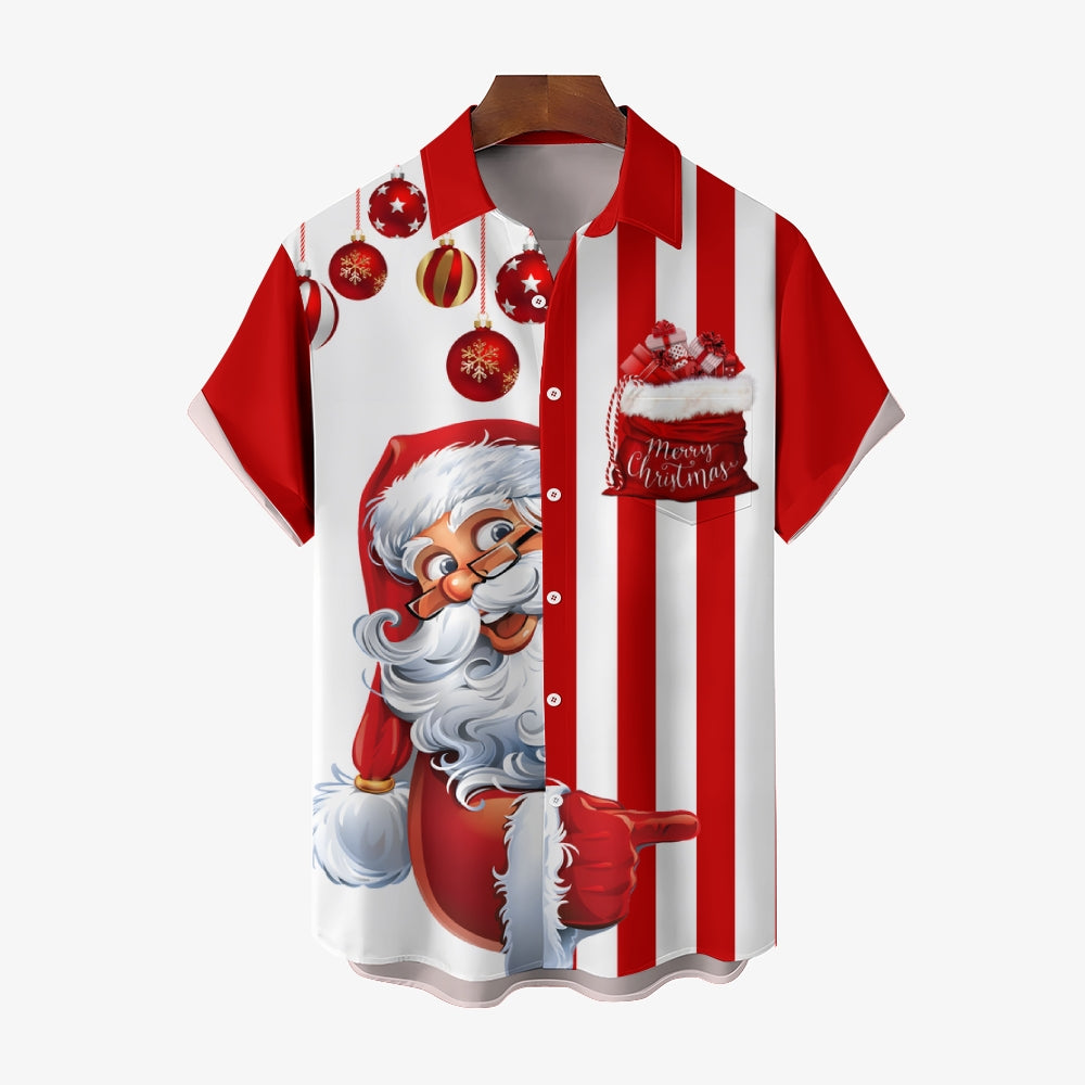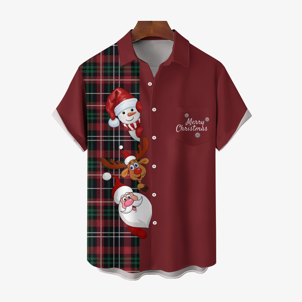 Christmas Casual Chest Pocket Short Sleeved Shirt 2310000067