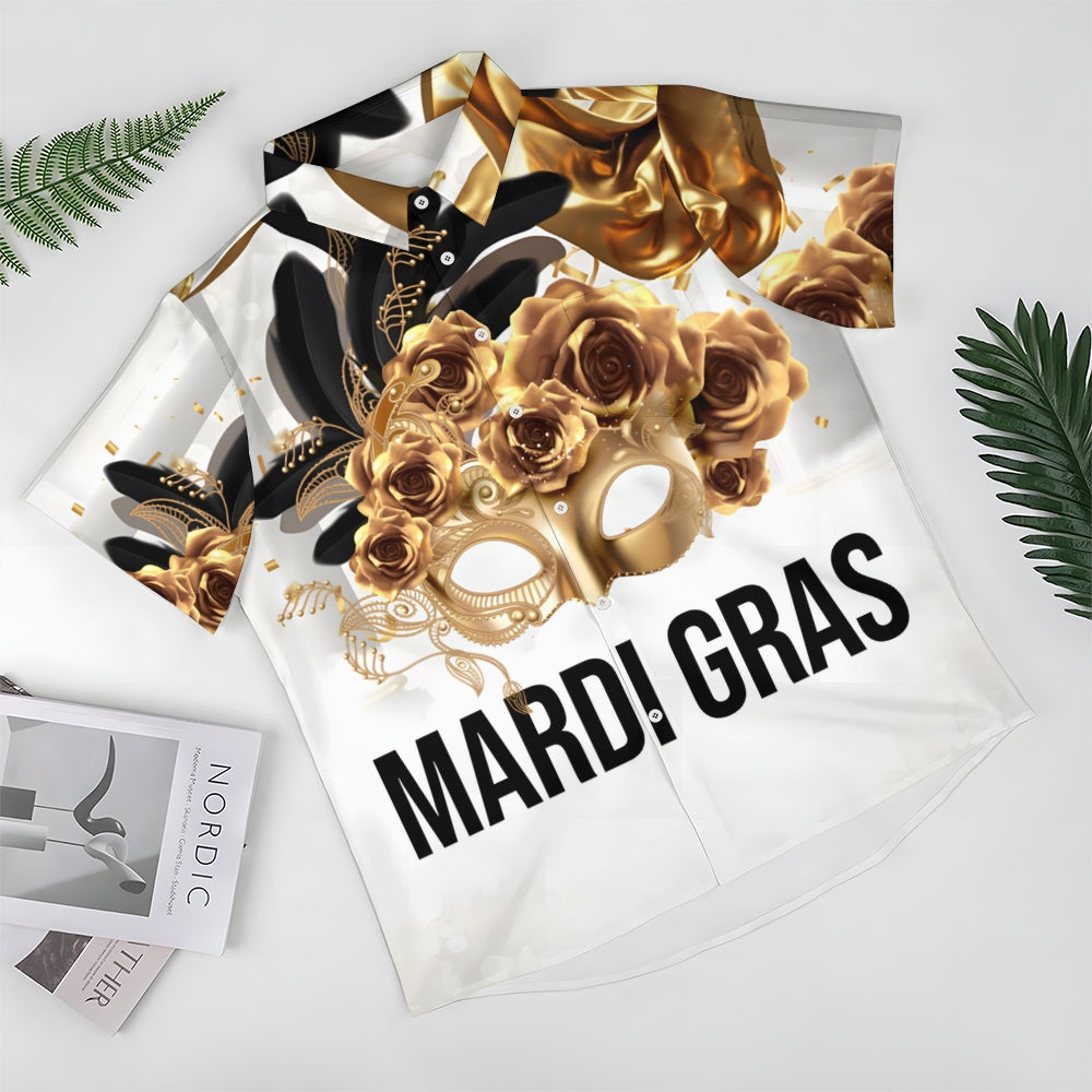 Mardi Gras Mask Art Print Casual Short Sleeve Shirt 2411013432