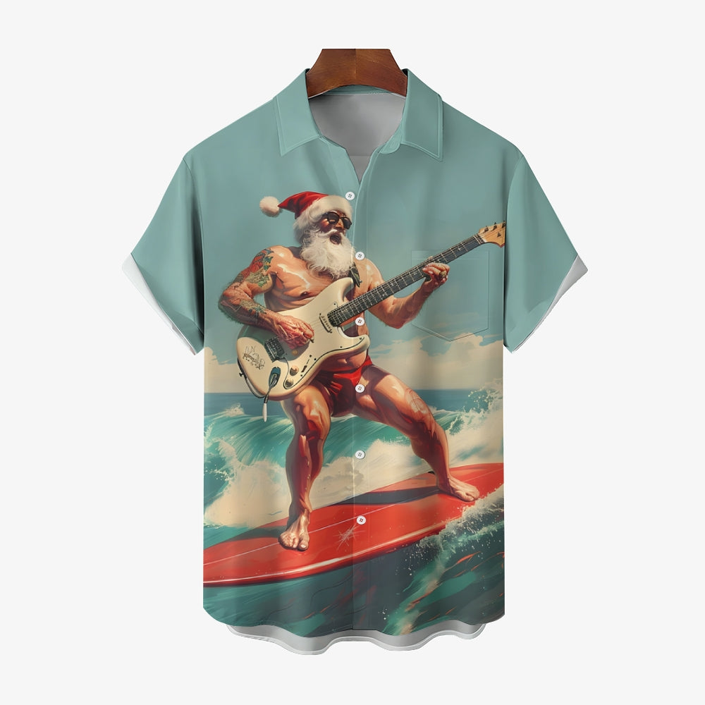 Funny Surfing Christmas Santa Claus Print Short Sleeve Shirt 2411005334