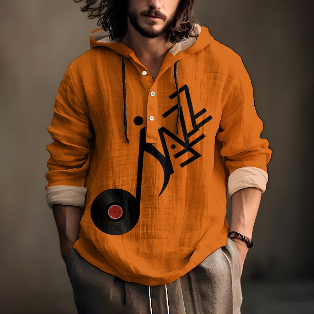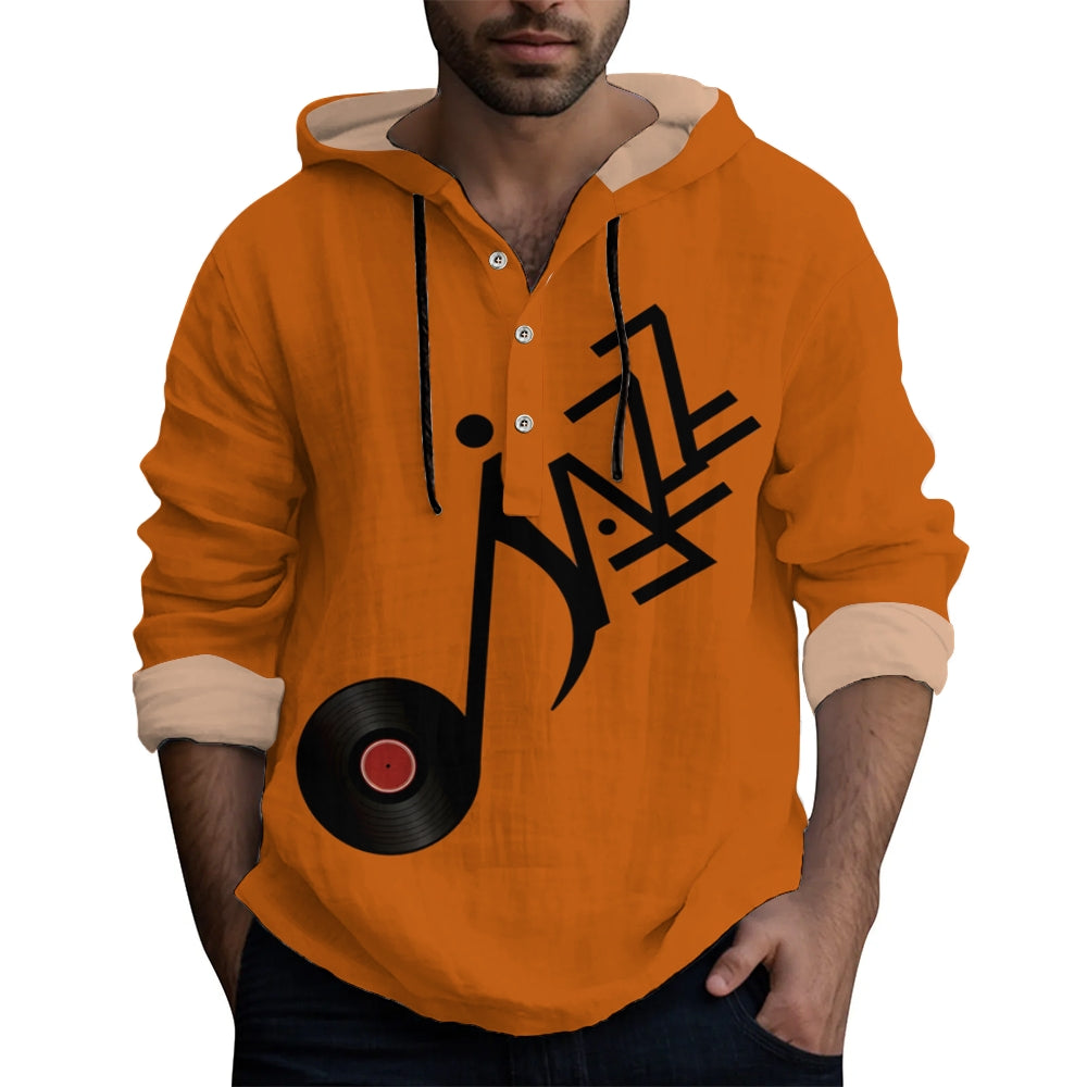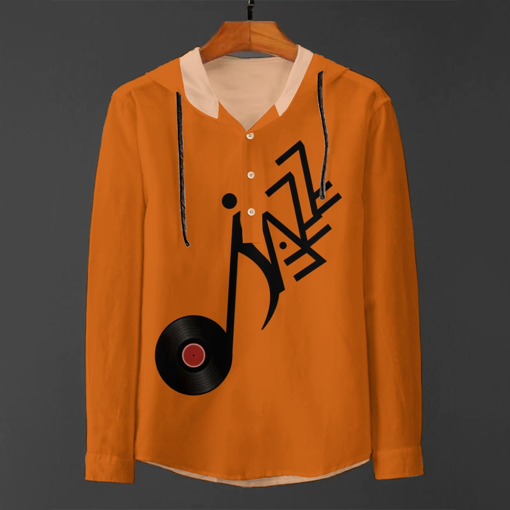 Men's Jazz Records Art Print Hooded Shirt 2410003696