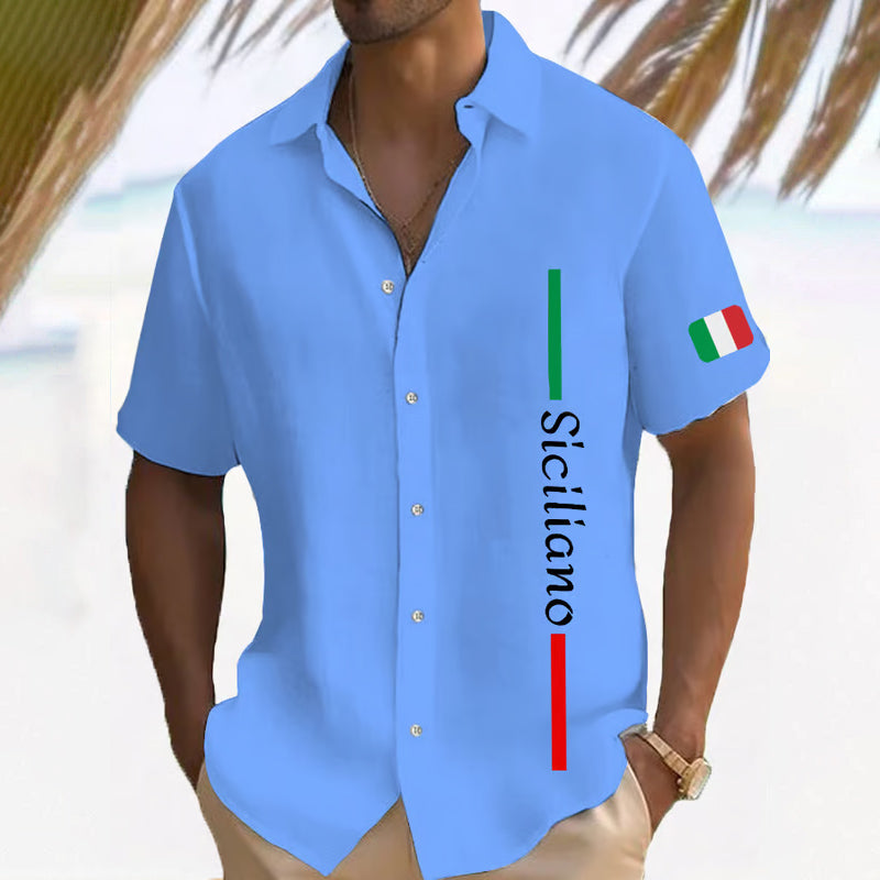 Men's Fabric Texture Print Short Sleeve Shirt 2501001494