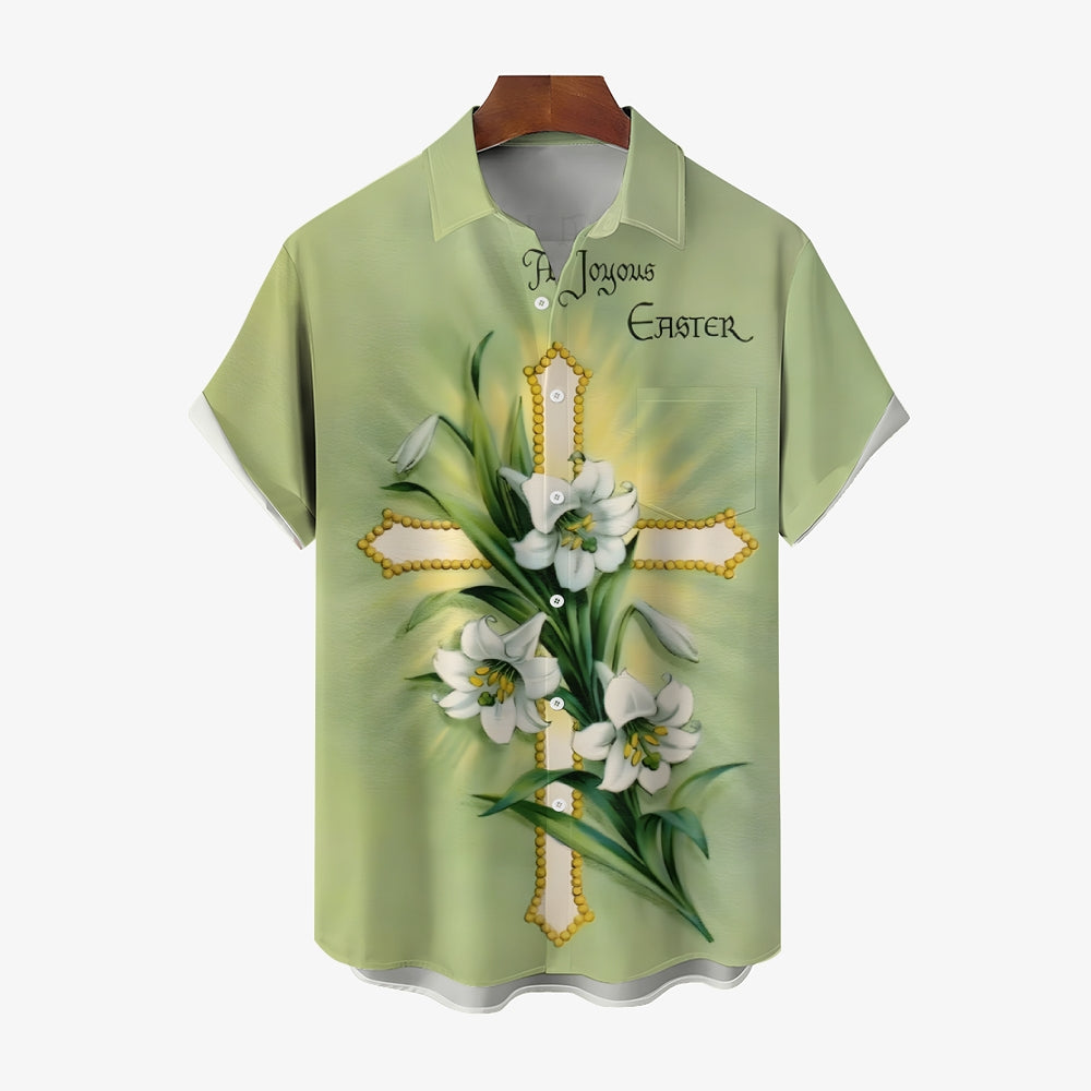 Happy Easter Cross Print Casual Short Sleeve Shirt 2412010174