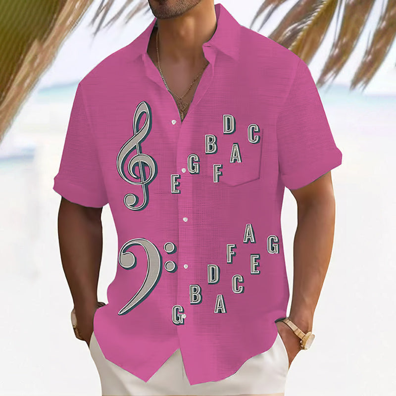 Guitar Notes Watercolor Print Casual Short Sleeve Shirt 2501005289