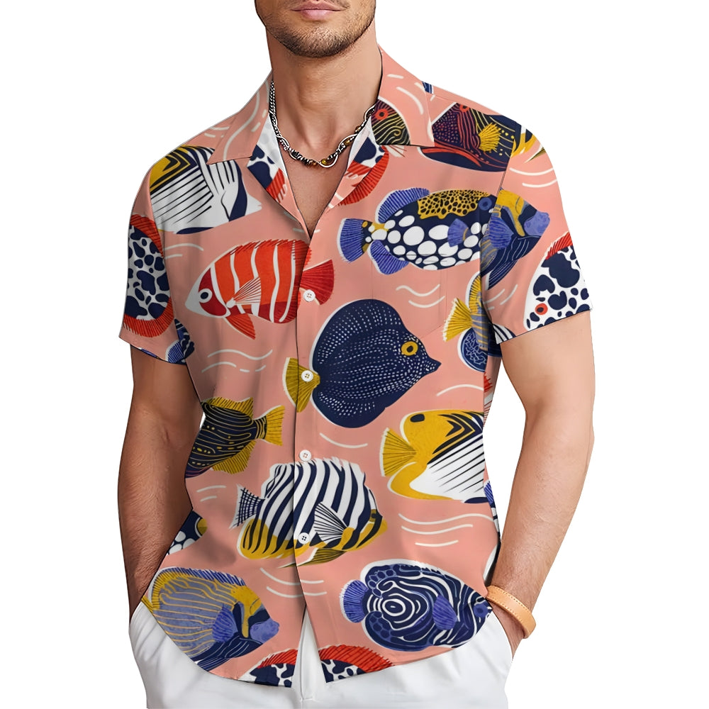 Men's Sea Fish Print Hawaiian Casual Short Sleeve Shirt 2412010184