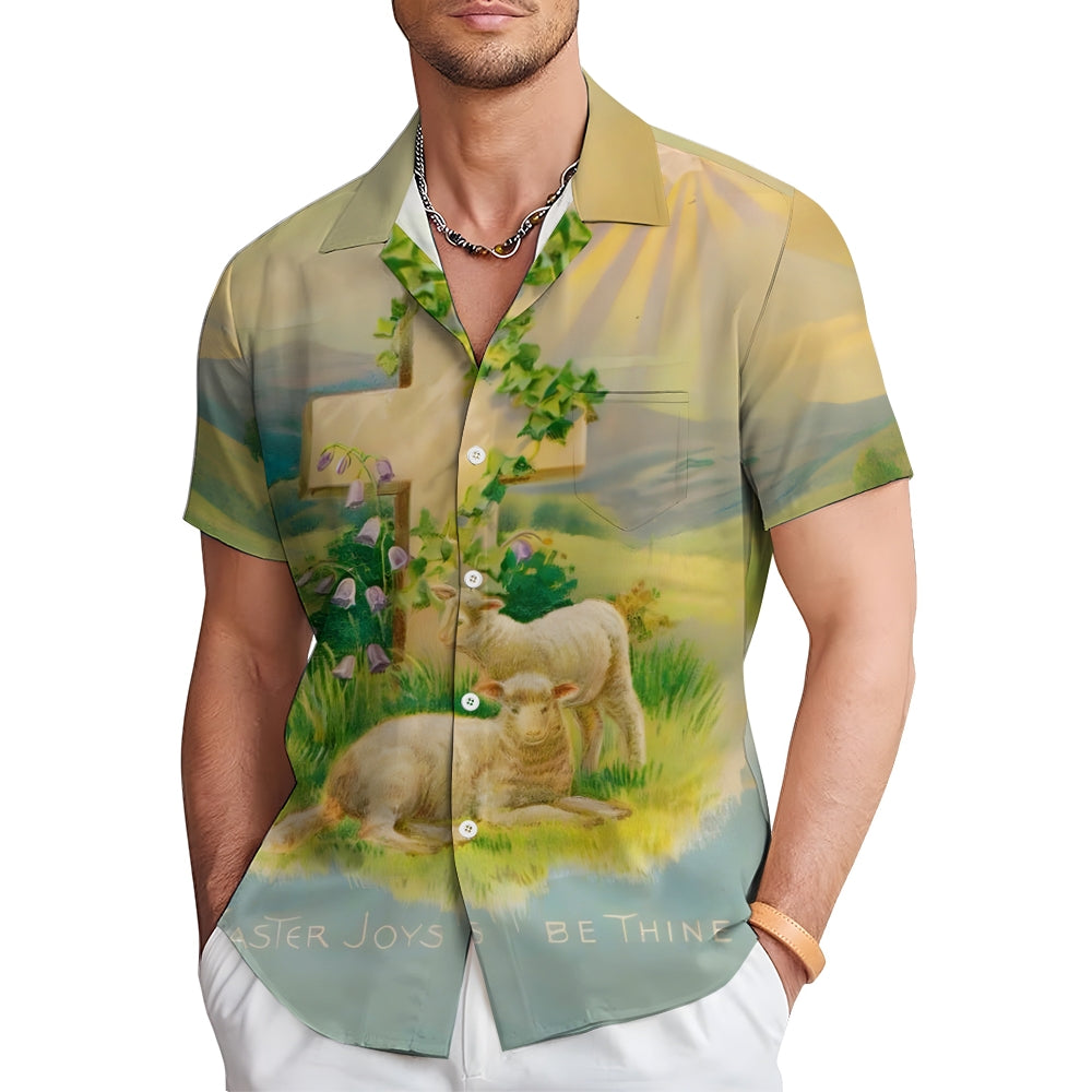Easter Sheep Cross Print Casual Short Sleeve Shirt 2412010139