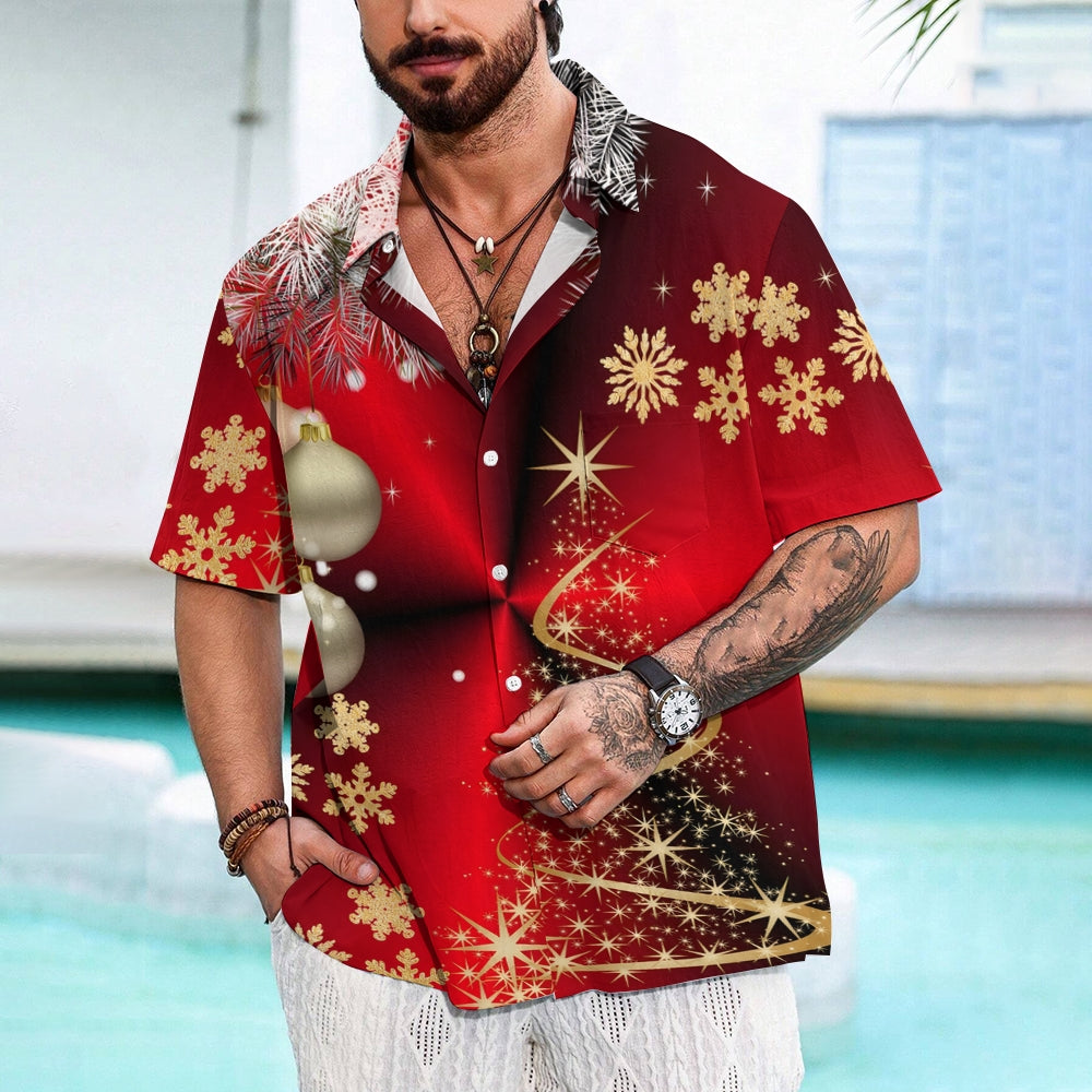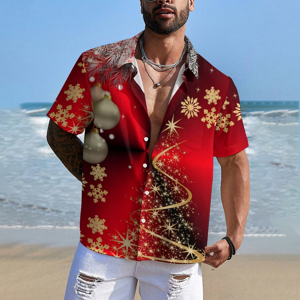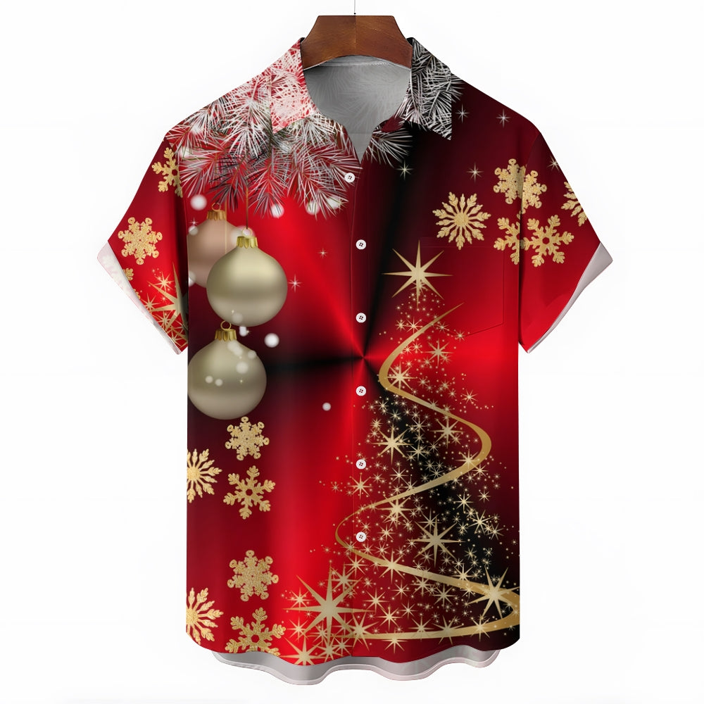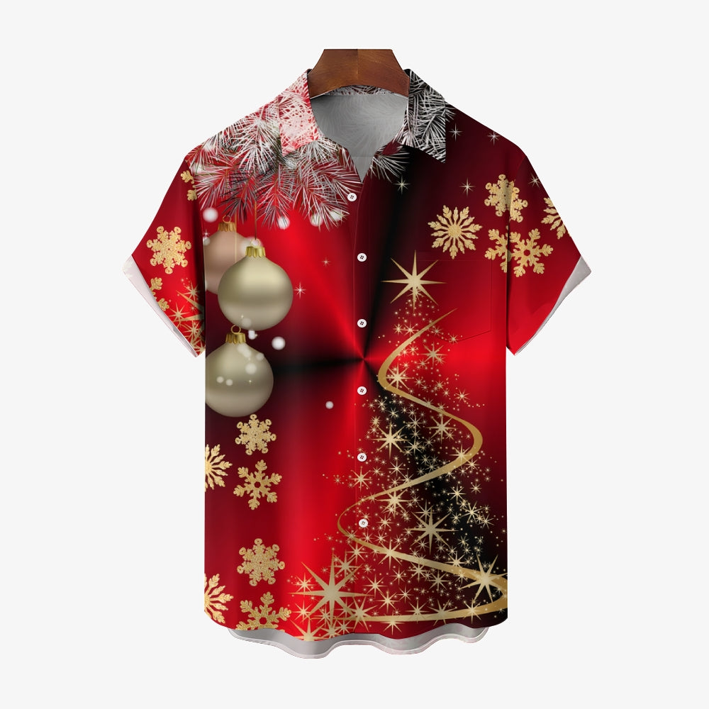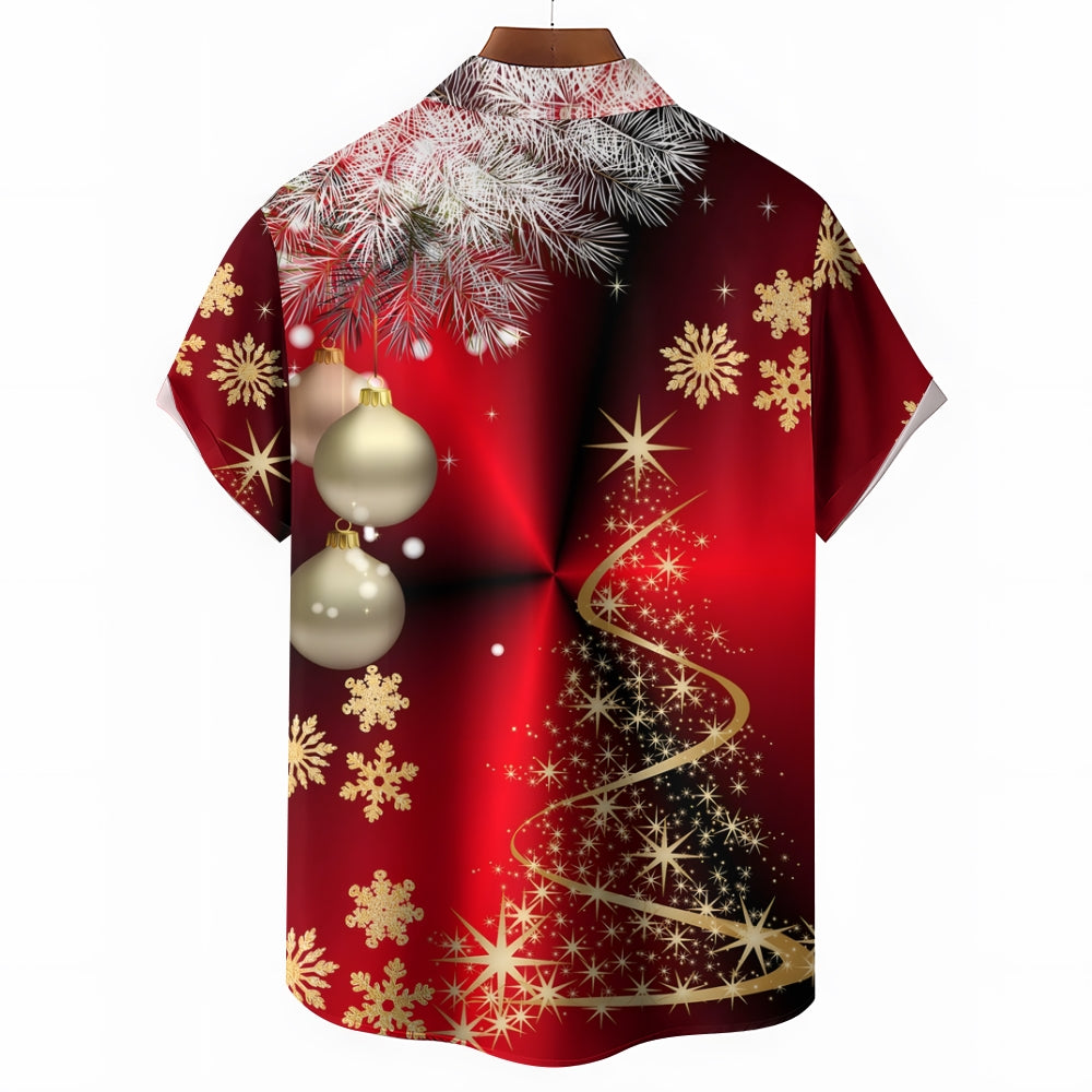 Christmas Tree Decorations Print Casual Short Sleeve Shirt 2412003168