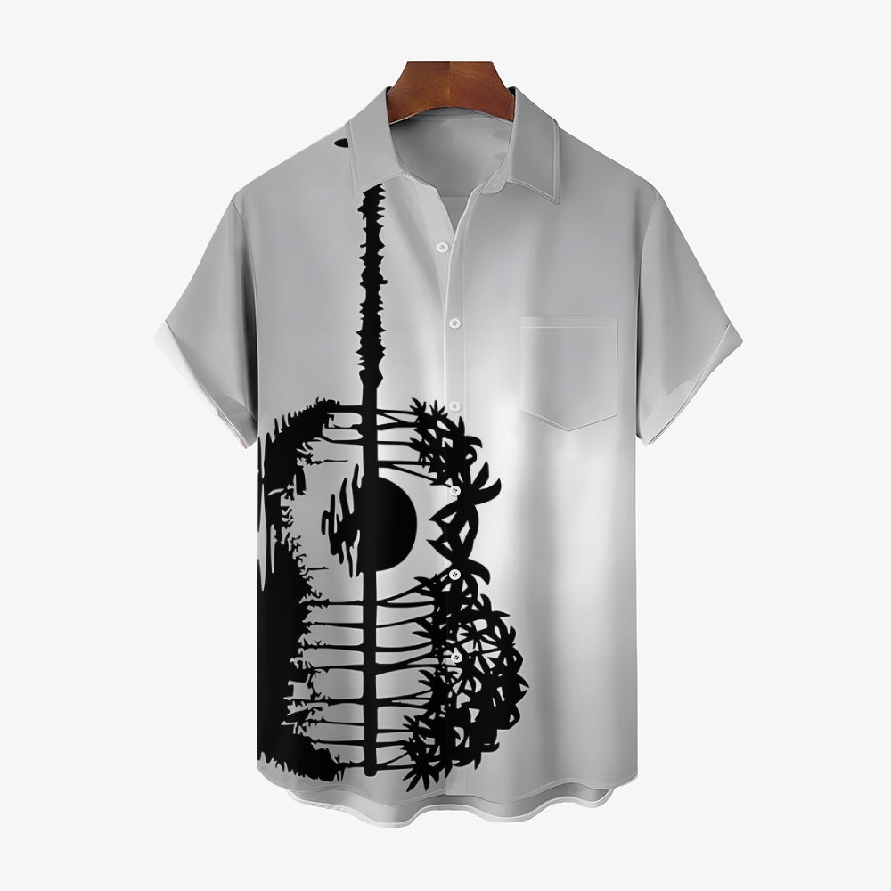 Hawaiian Guitar Silhouette Art Print Casual Short Sleeve Shirt 2501005329