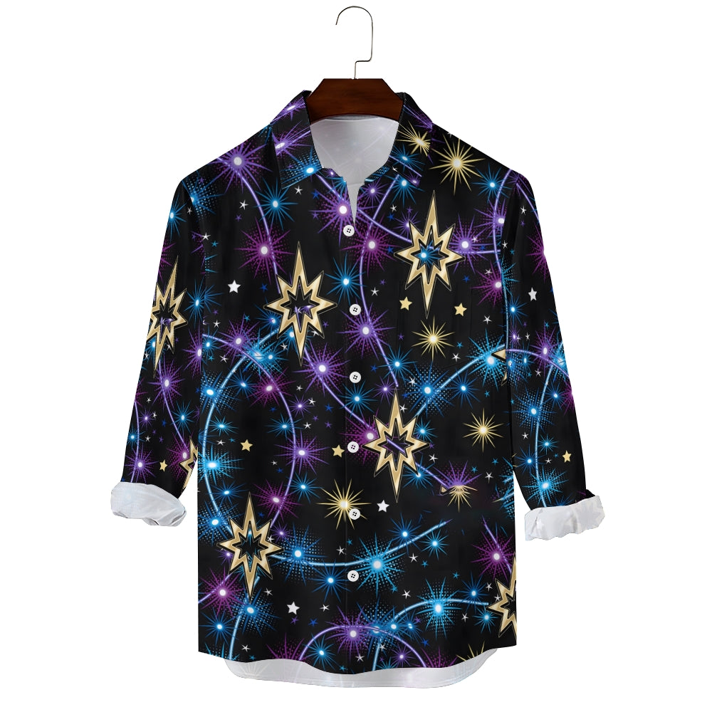Men's Shiny String Lights Print Long Sleeve Shirt 2410006399