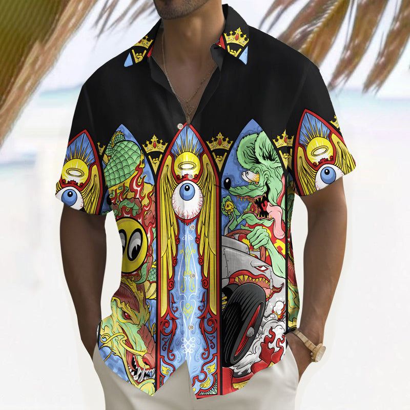 Men's Retro Cartoon Print Casual Short Sleeve Shirt 2501001334