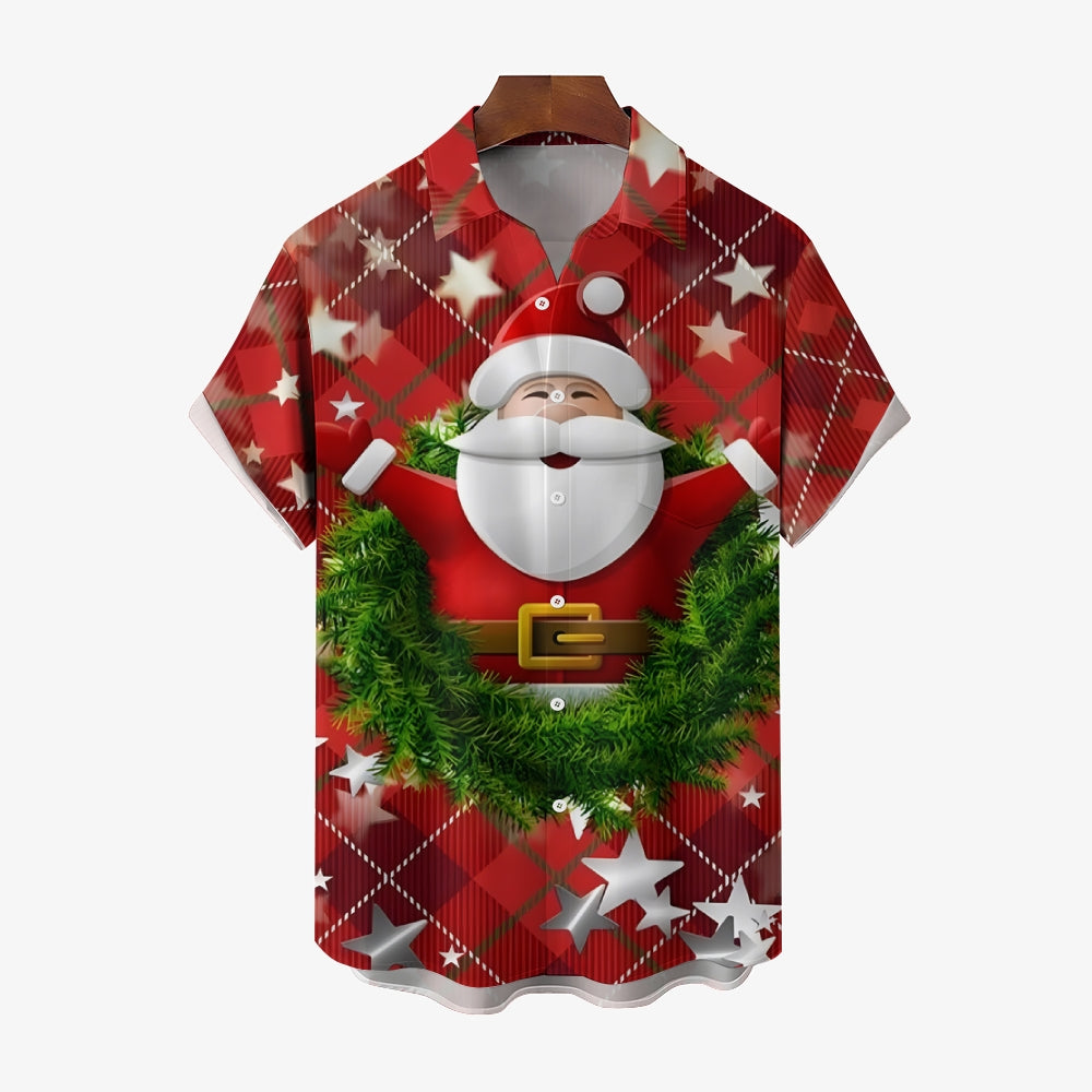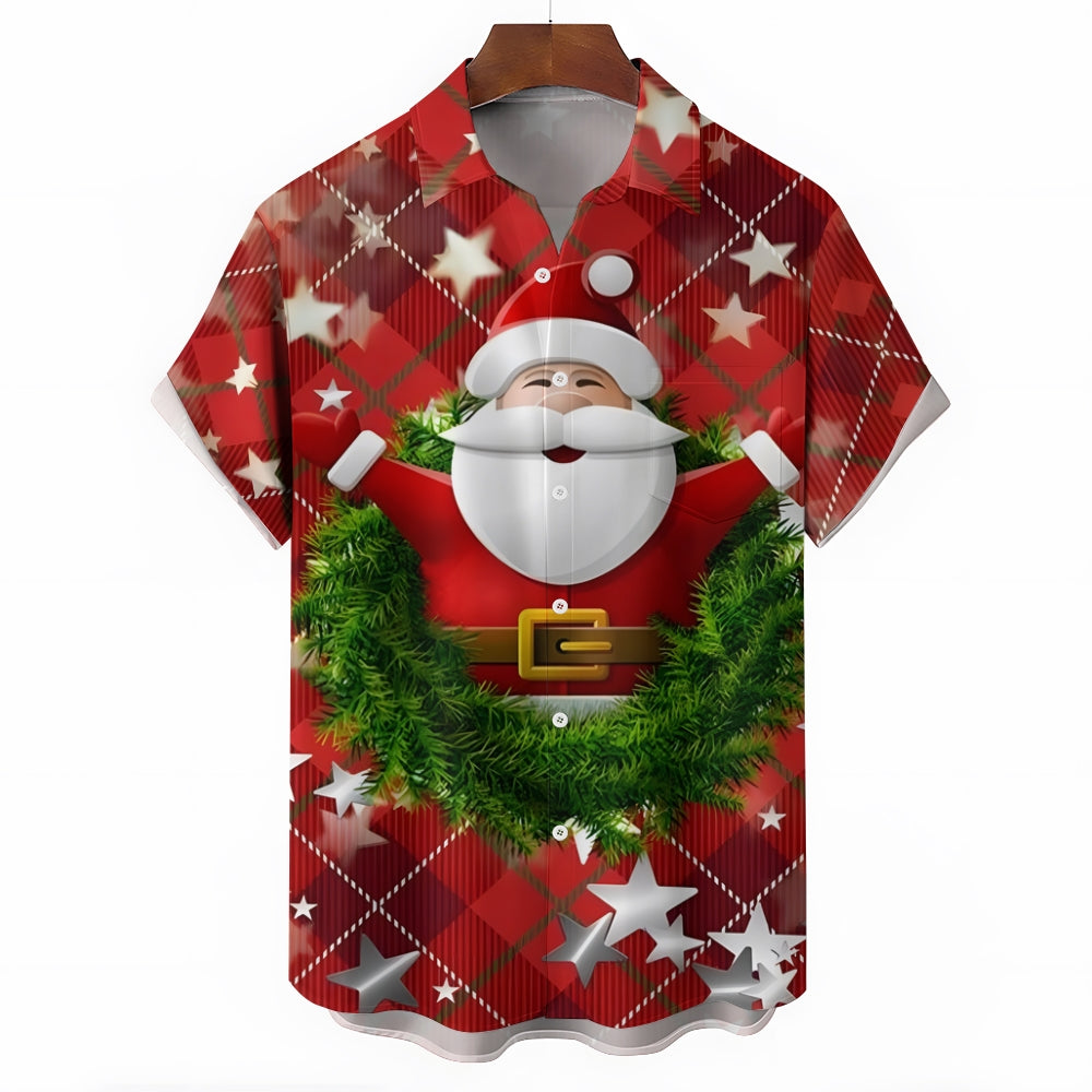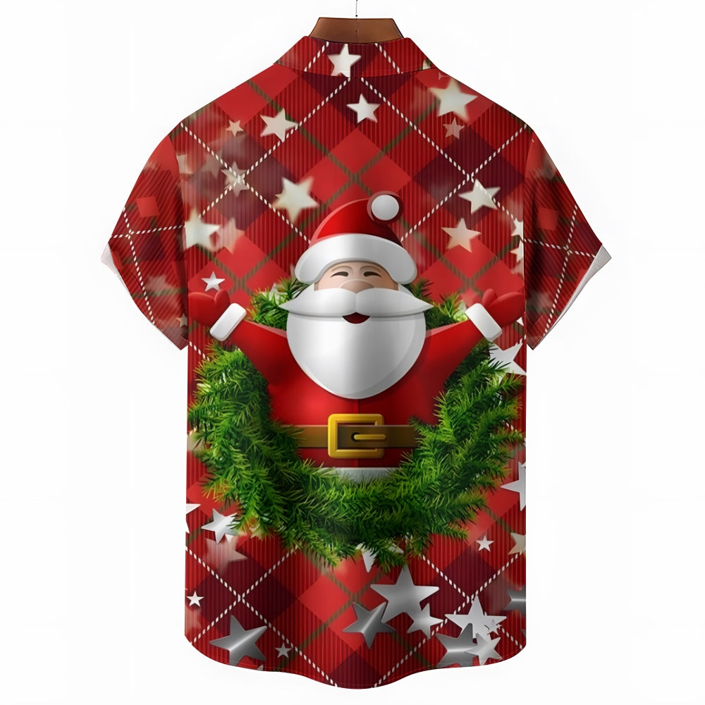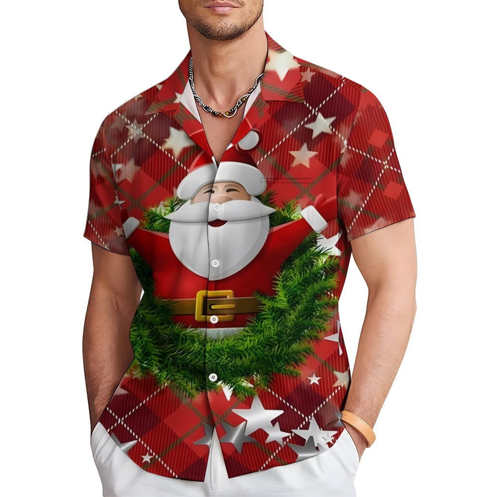 Christmas Themed Casual Chest Pocket Short Sleeve Shirt 2309000281