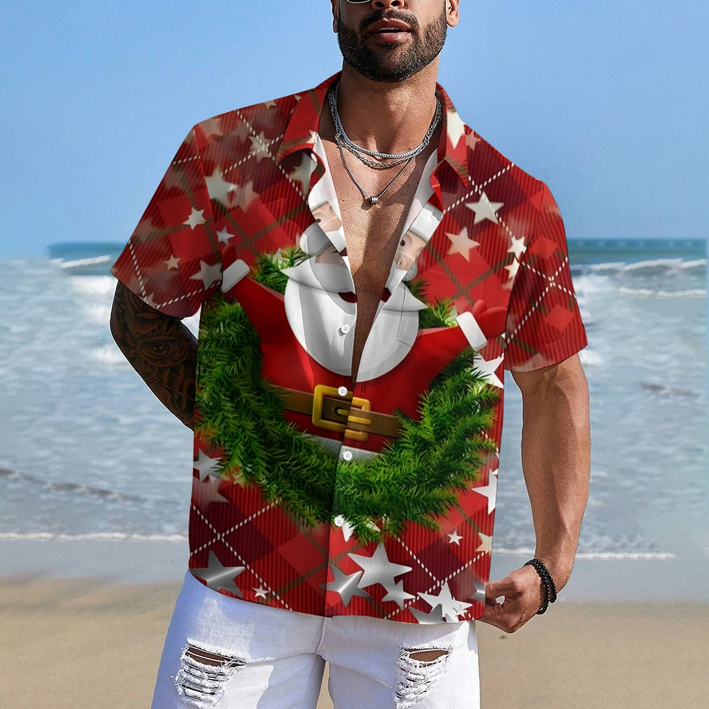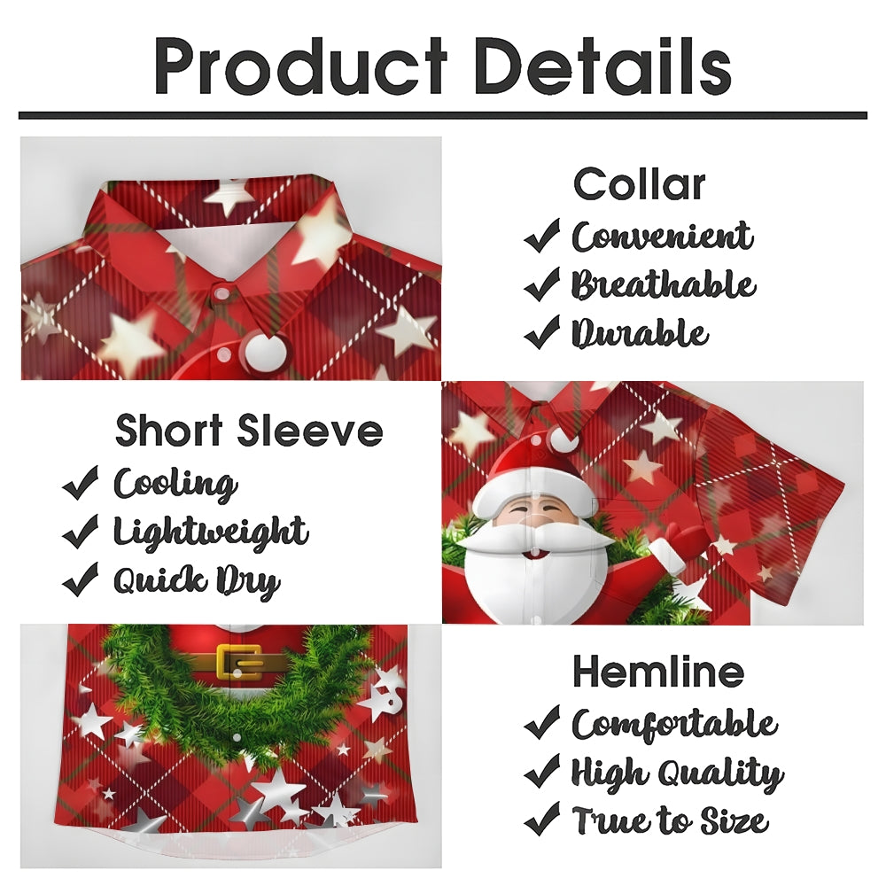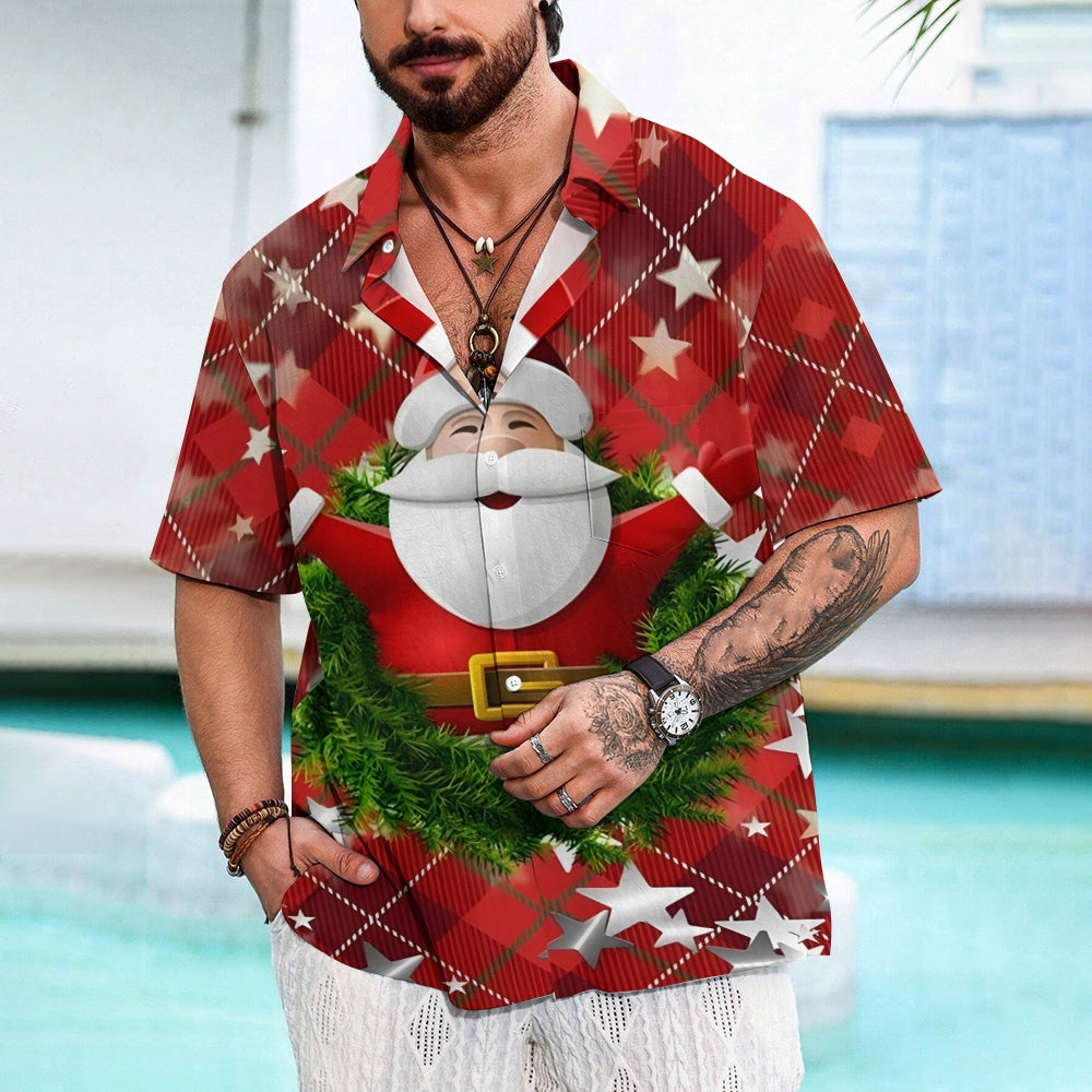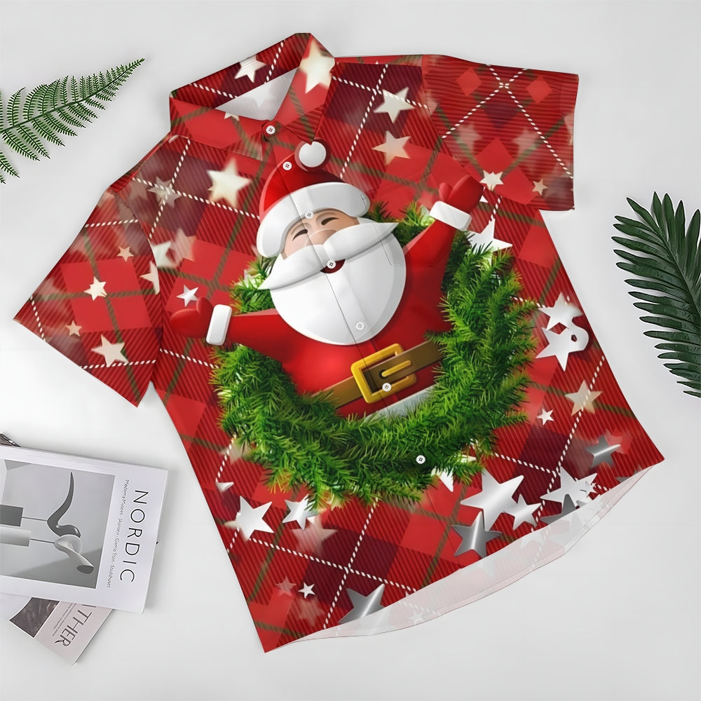 Christmas Themed Casual Chest Pocket Short Sleeve Shirt 2309000281