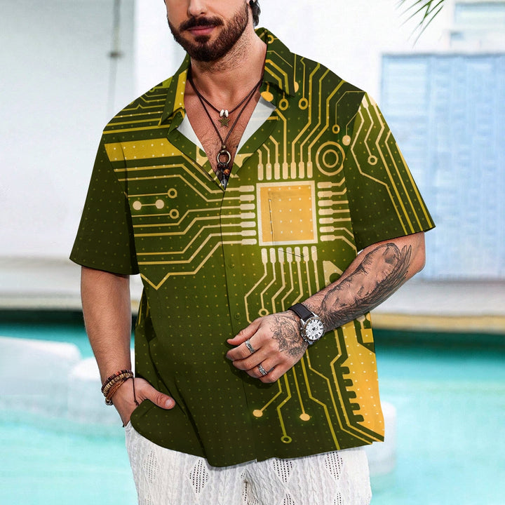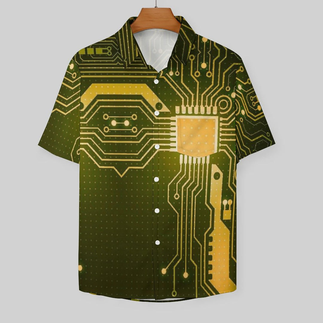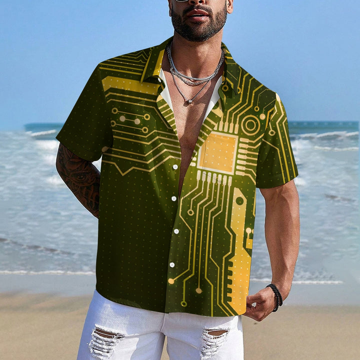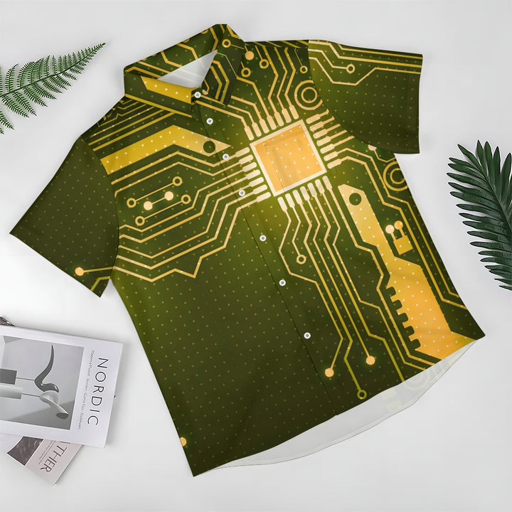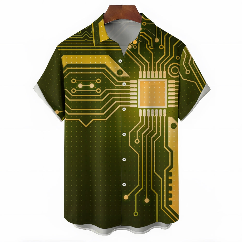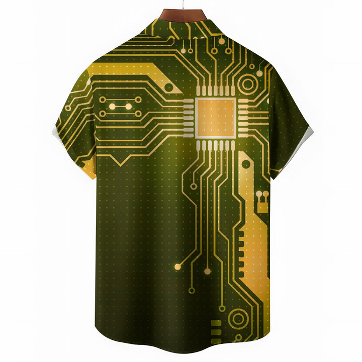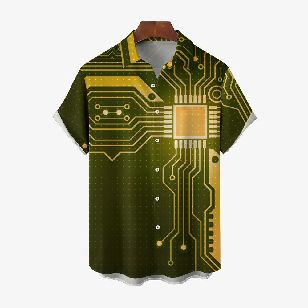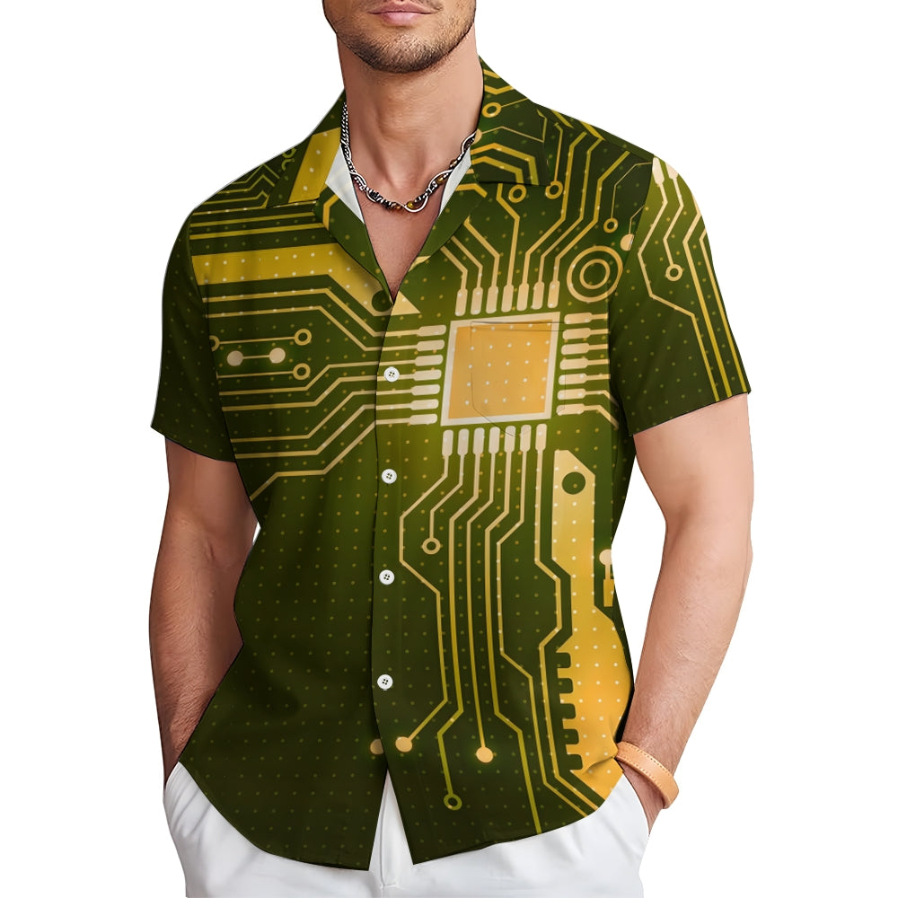 Electronic Casual Chest Pocket Short Sleeved Shirt 2310000035