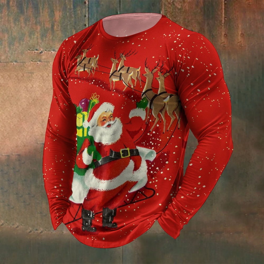 Men's Crew Neck Santa Print Long Sleeve T-Shirt 2411002476