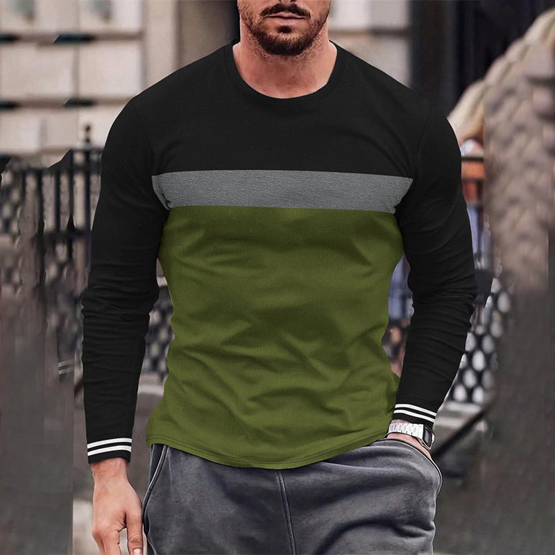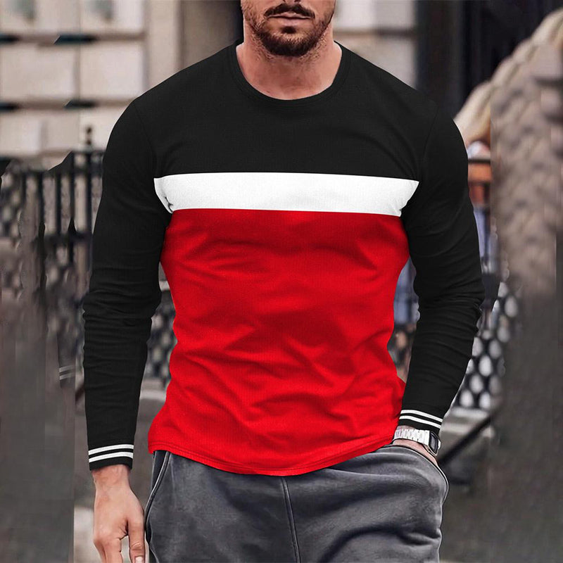 Men's Crew Neck Retro Geometric Stripe Print Long Sleeve T-Shirt 2411002499