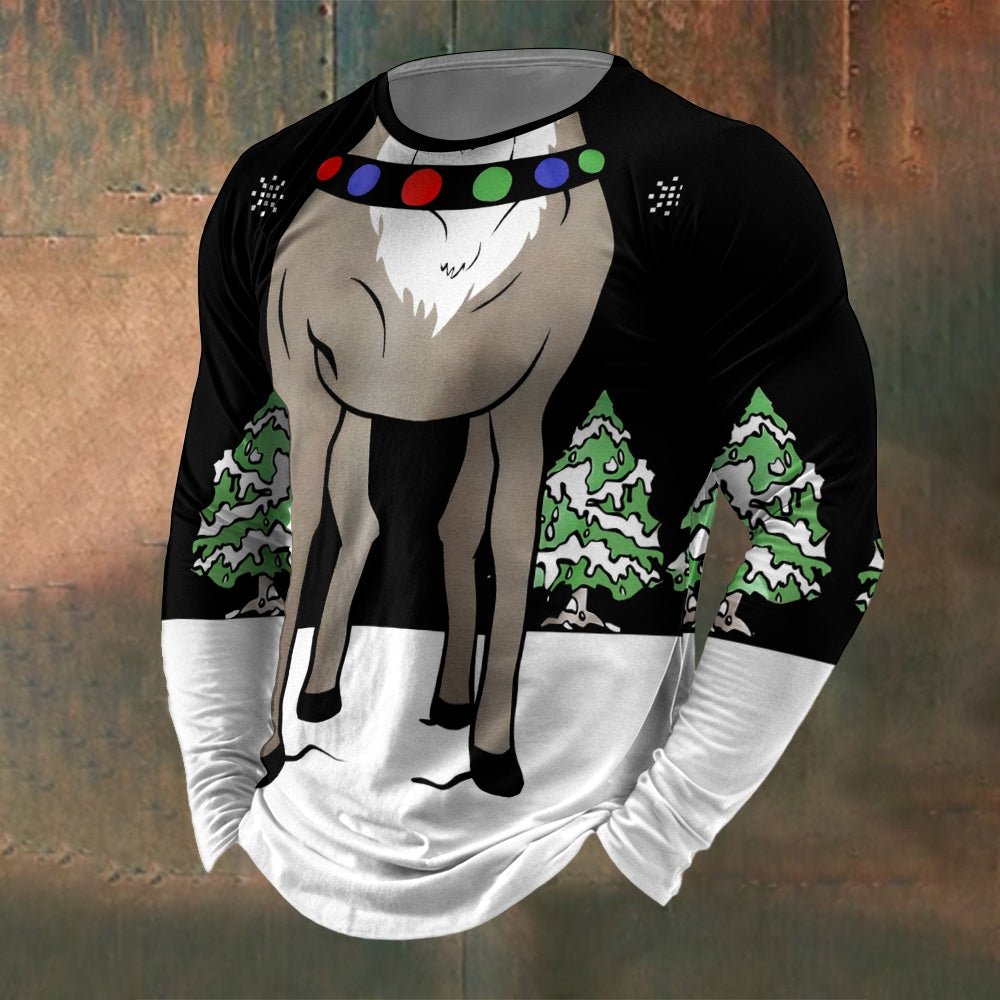 Men's Crew Neck Christmas Elk Print Long Sleeve T-Shirt 2411002484