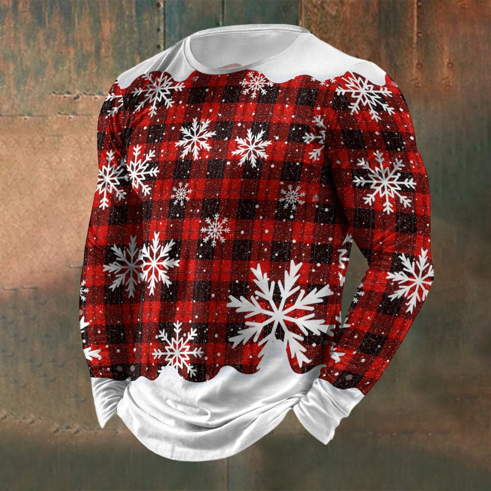 Men's Crew Neck Christmas Plaid Snowflake Print Long Sleeve T-Shirt 2411002496