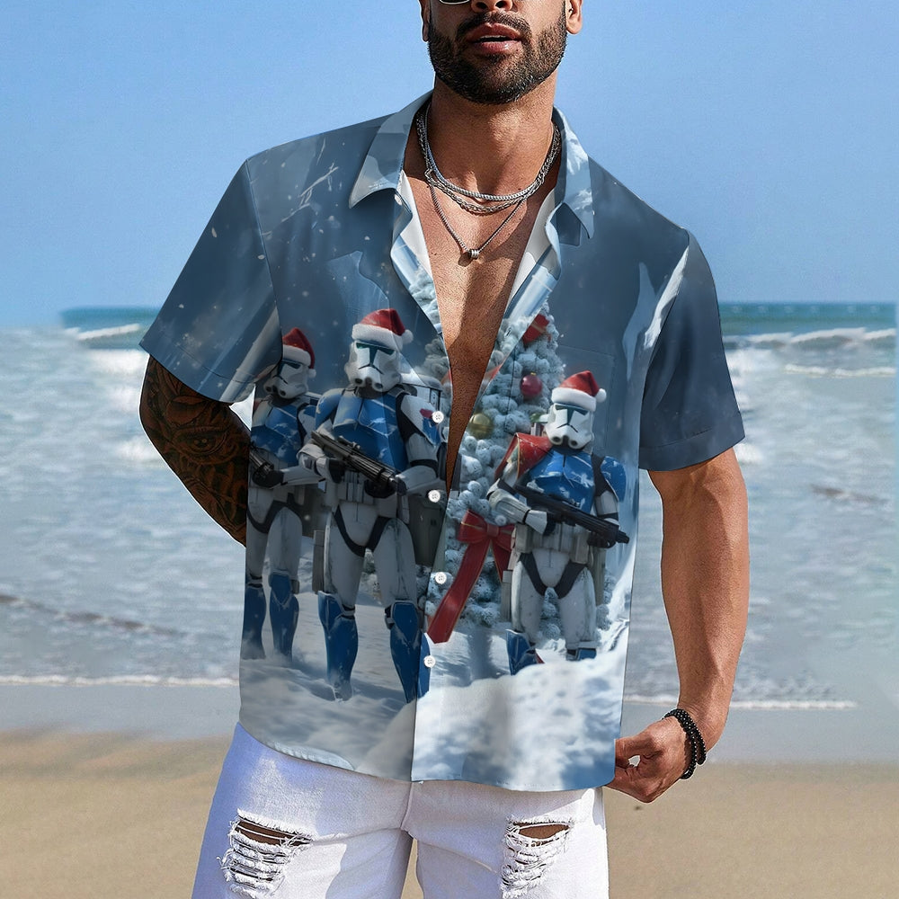 Christmas Cartoon Space Warrior Santa Claus Print Short Sleeve Shirt 2412005904