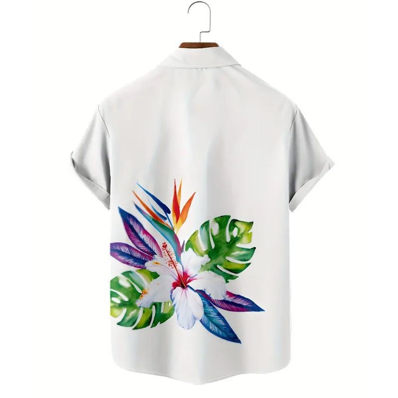 Men's Tropical Botanical Print Casual Short Sleeve Shirt 2404000057