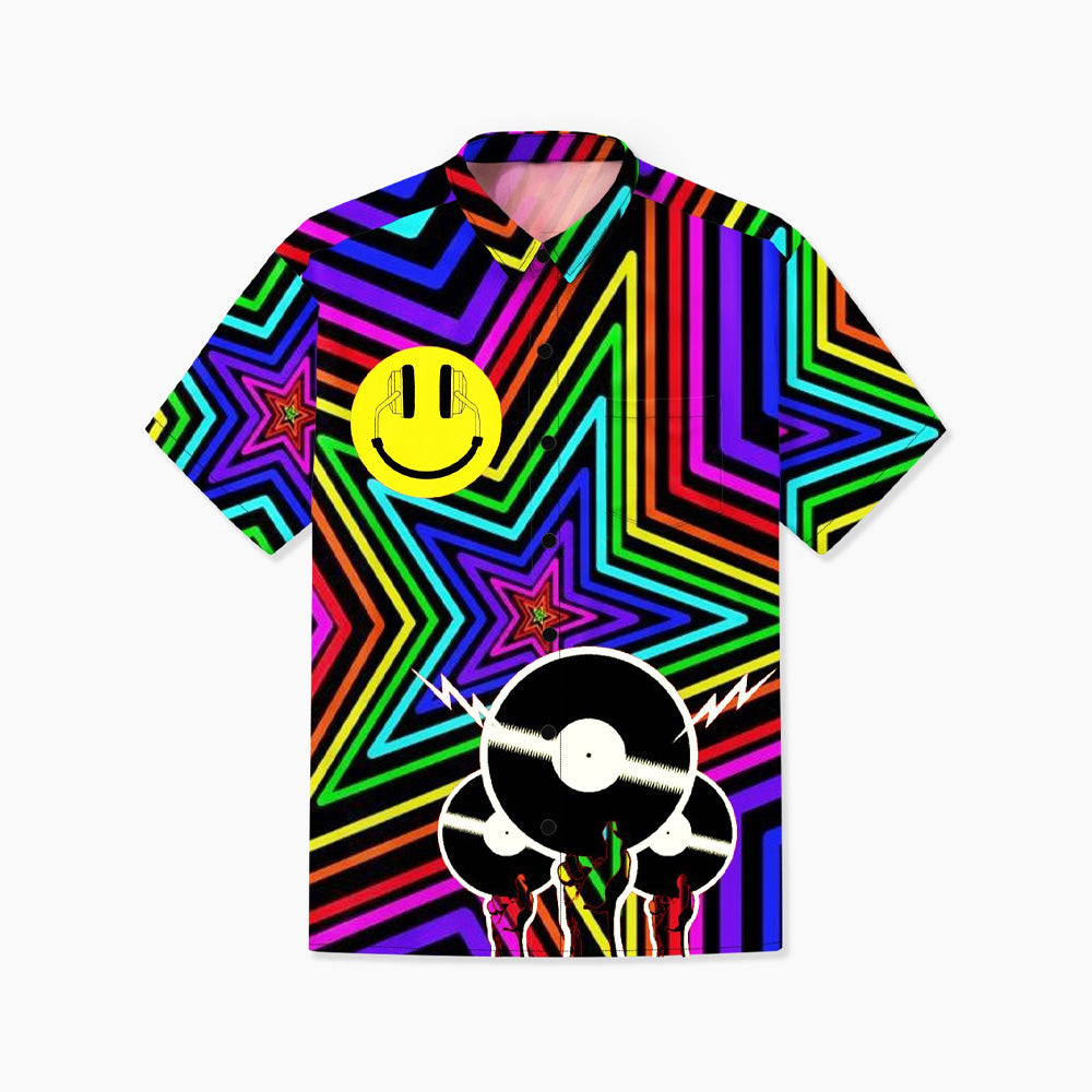 Pop Music Vinyl Record Oversized Cotton and Linen Short Sleeve Shirt