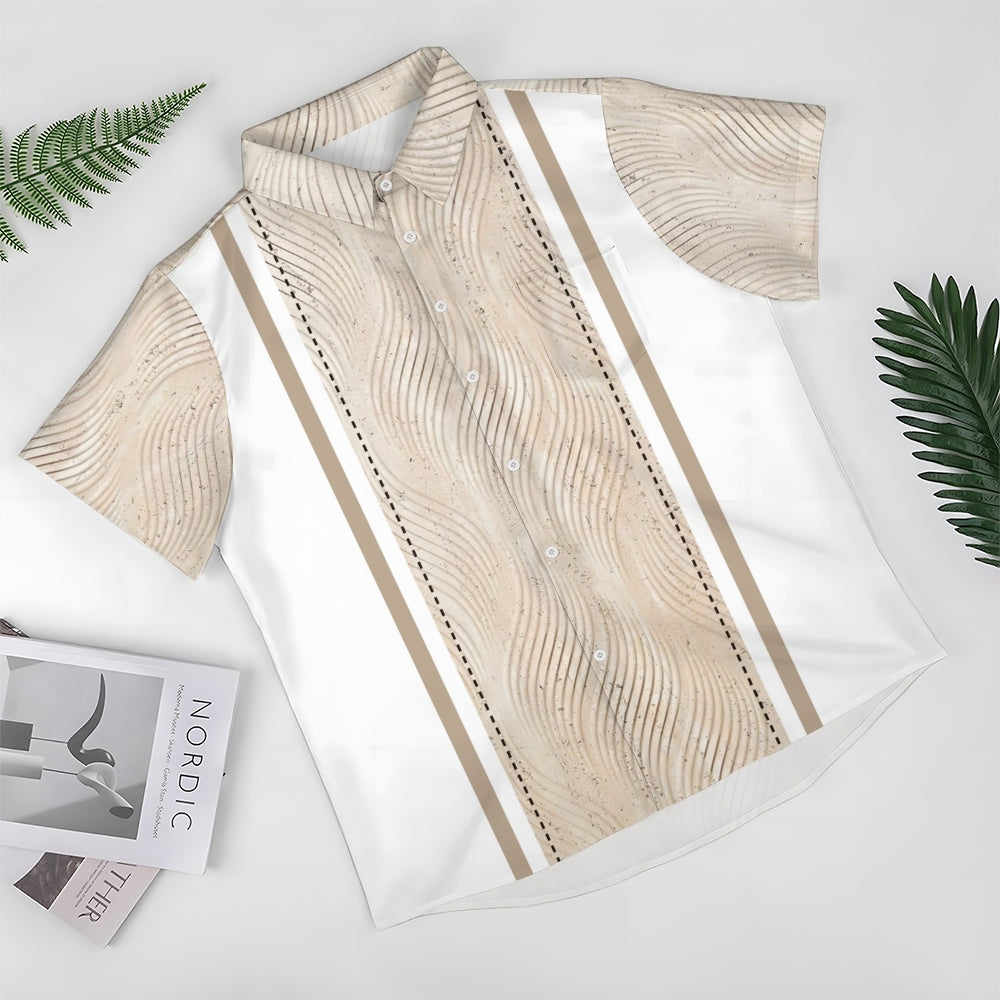 Retro Geometric Texture 3D Bowling Print Men's Button Pocket Short Sleeve Shirt 2405000266