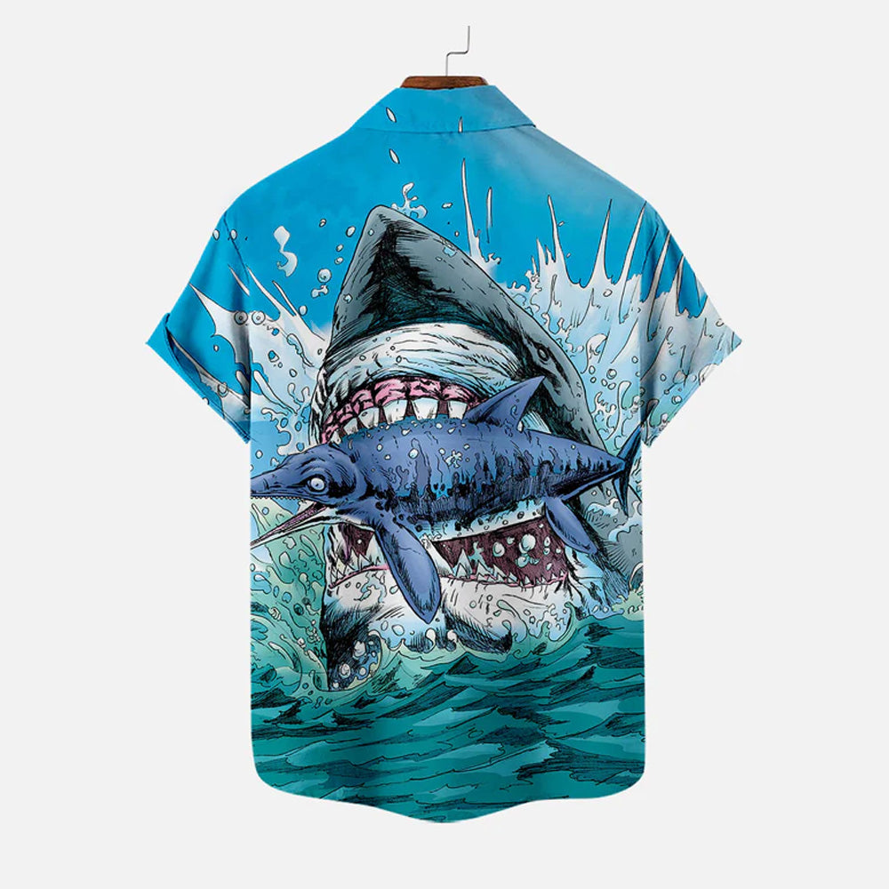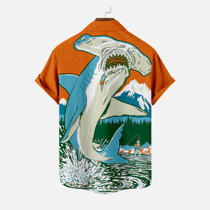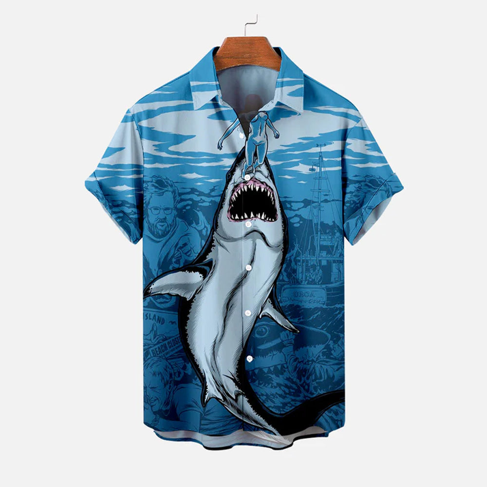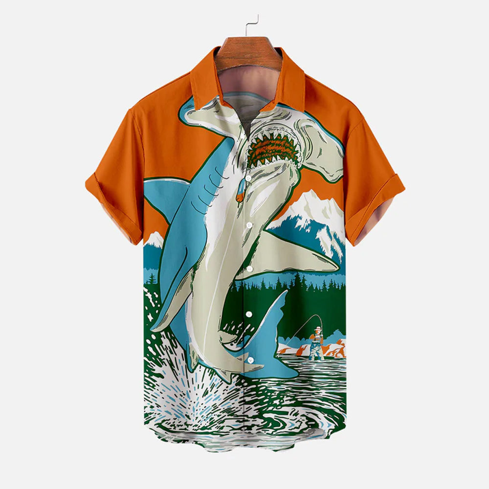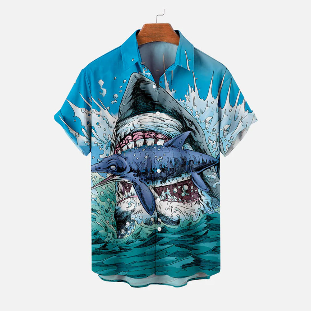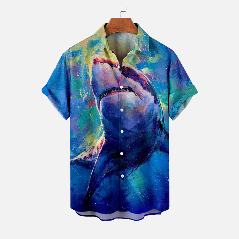 Men's Shark Large Size Casual Short Sleeve Shirt