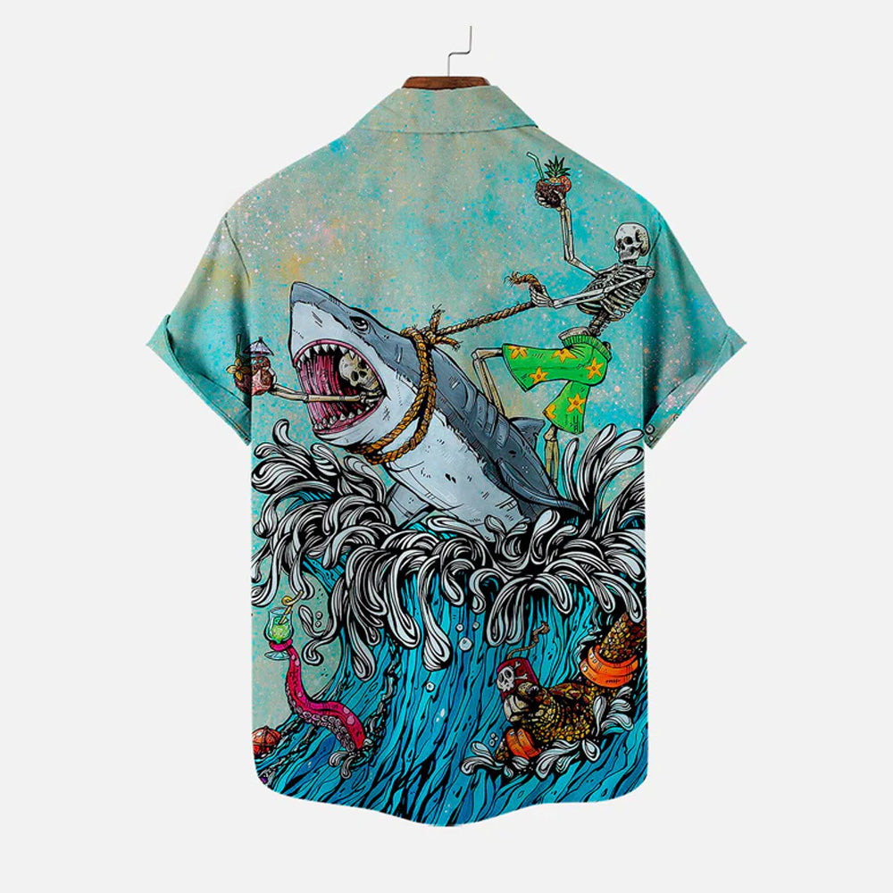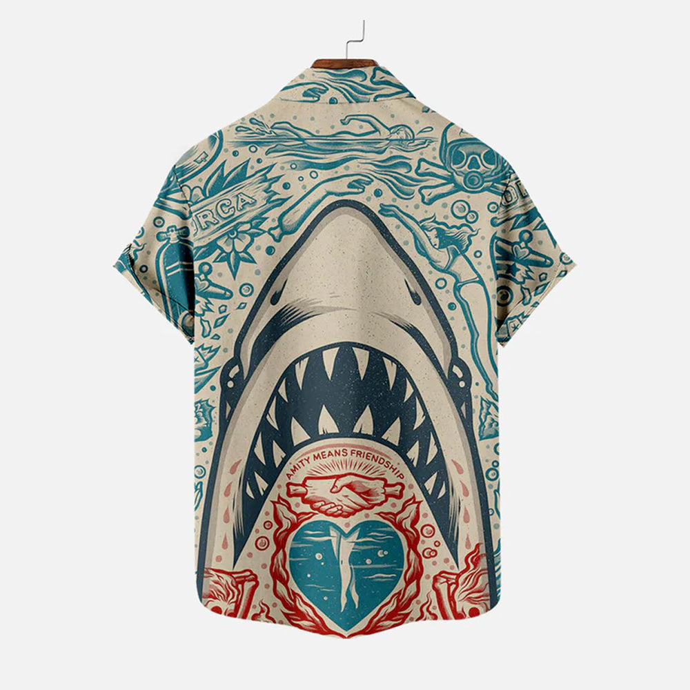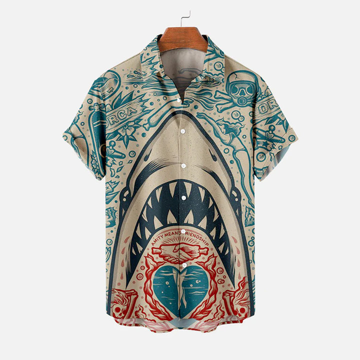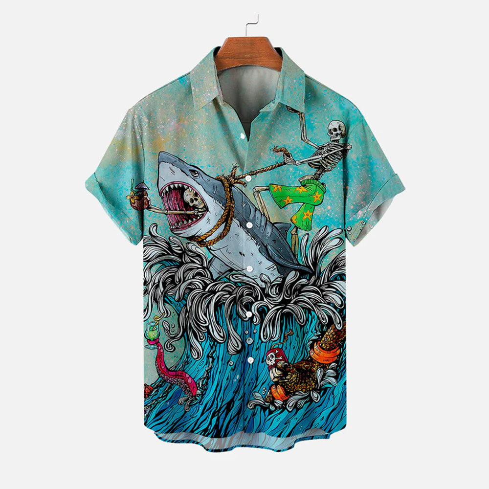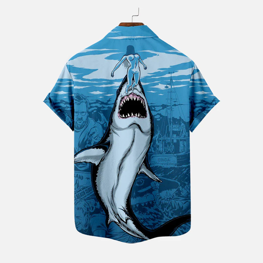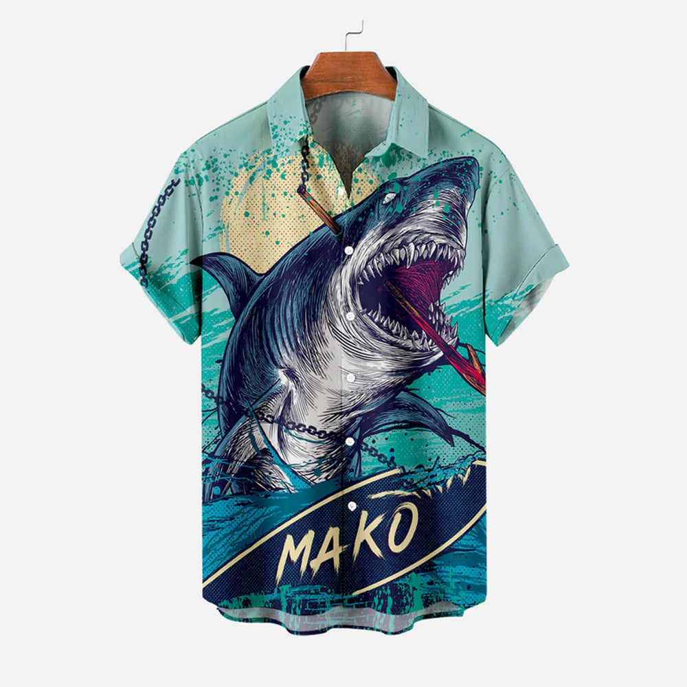 Men's Shark Large Size Casual Short Sleeve Shirt