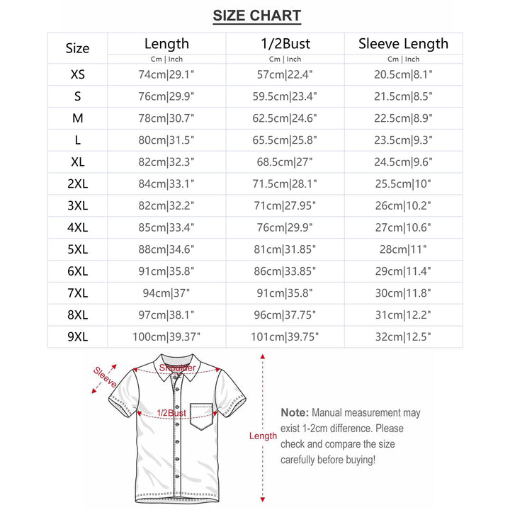 • Please note: Large short-sleeved shirts 5XL~9XL do not have pockets
