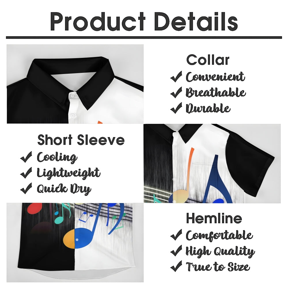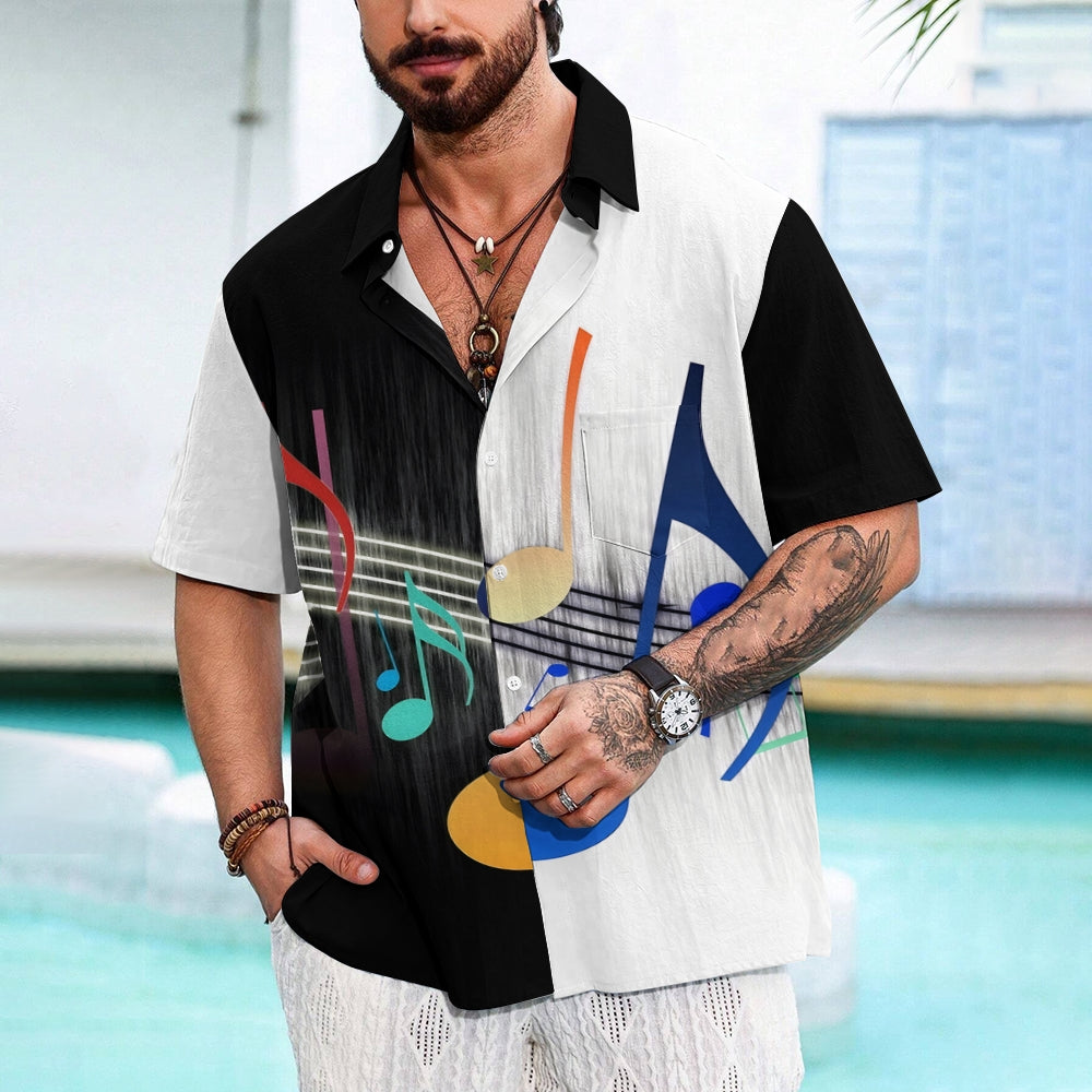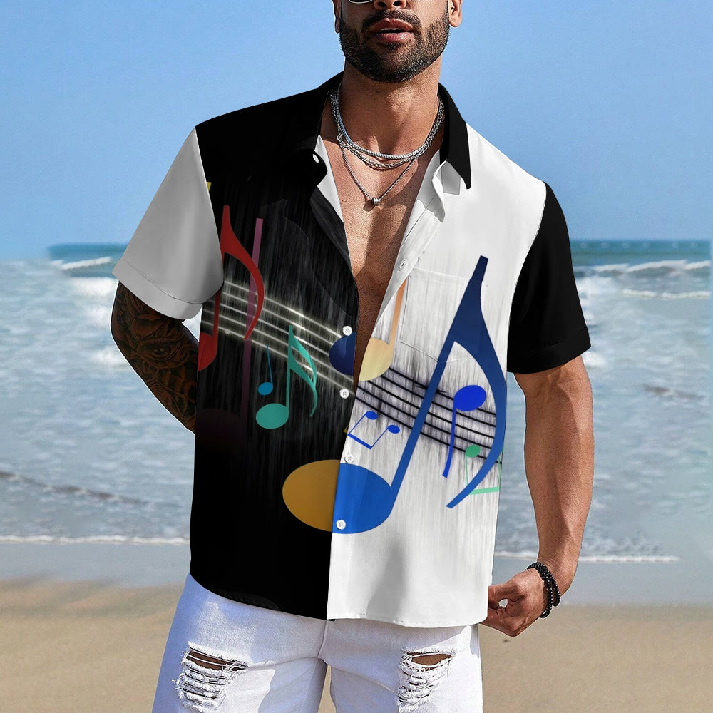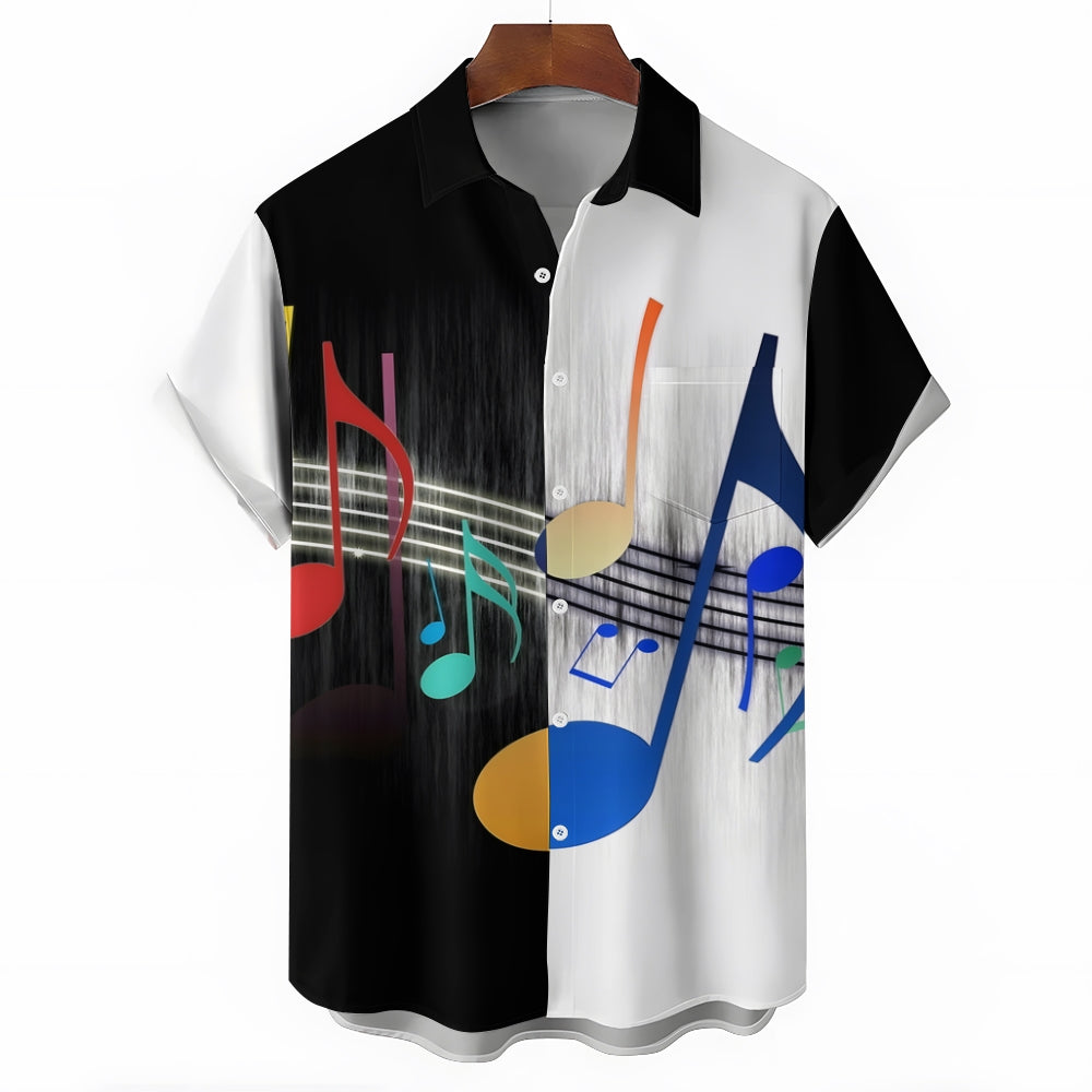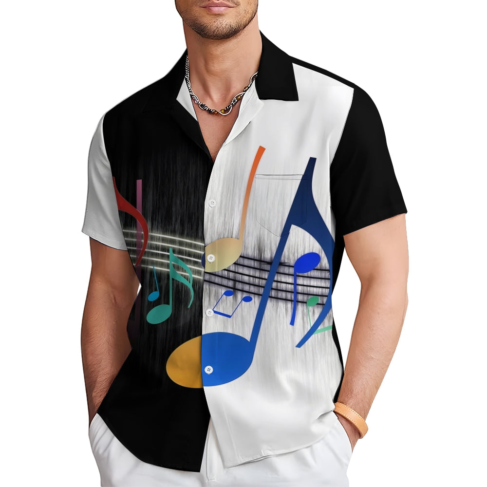 Men's Fashion Contrast Color Musical Note Printing Shirt 2410000945
