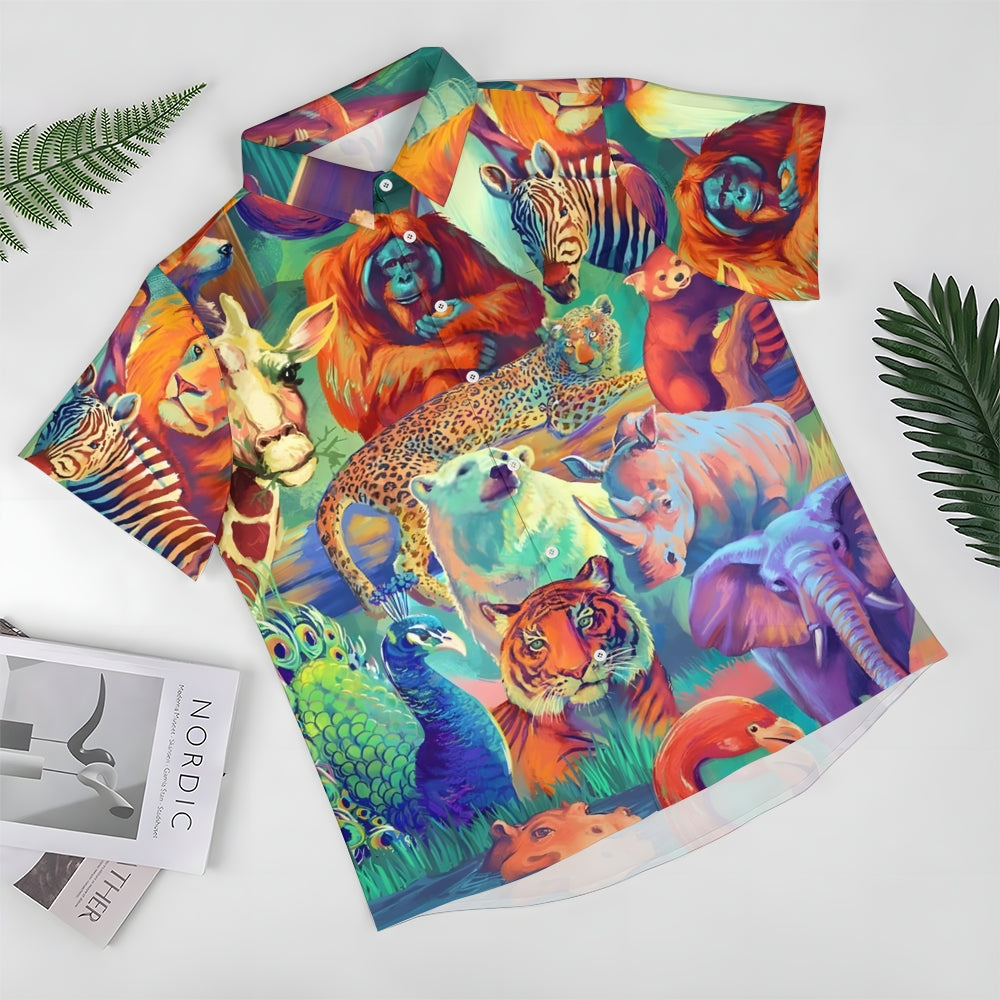 Animal World Print Casual Short Sleeve Shirt 2412004242