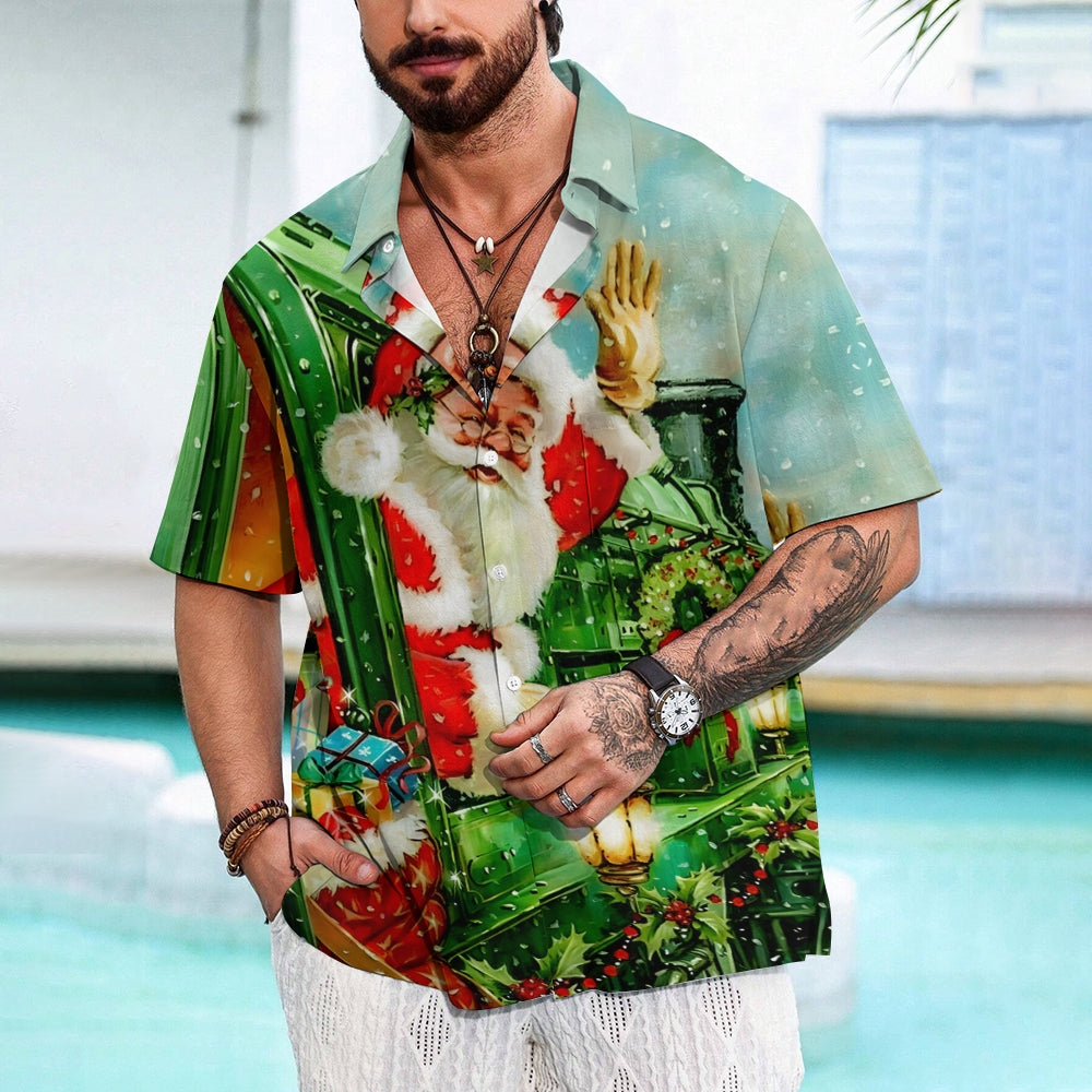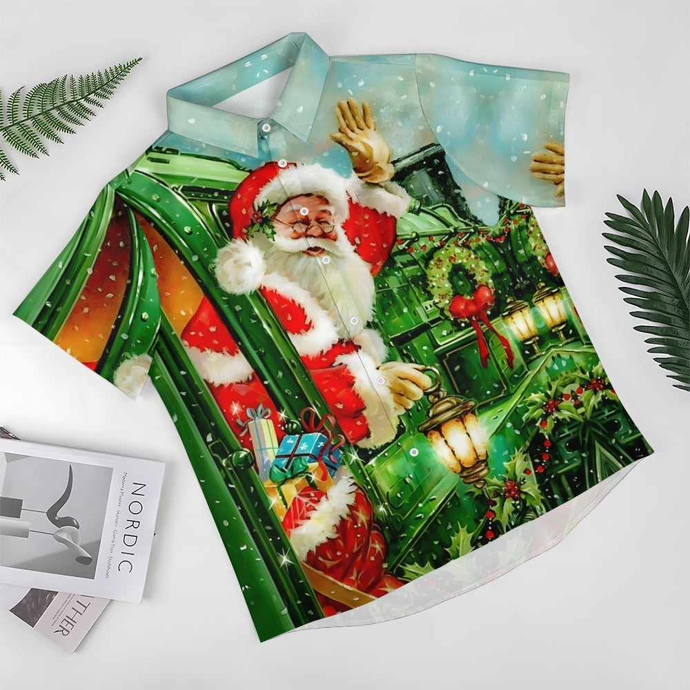 Christmas Santa Claus Green Train Casual Short Sleeve Shirt 2411003259
