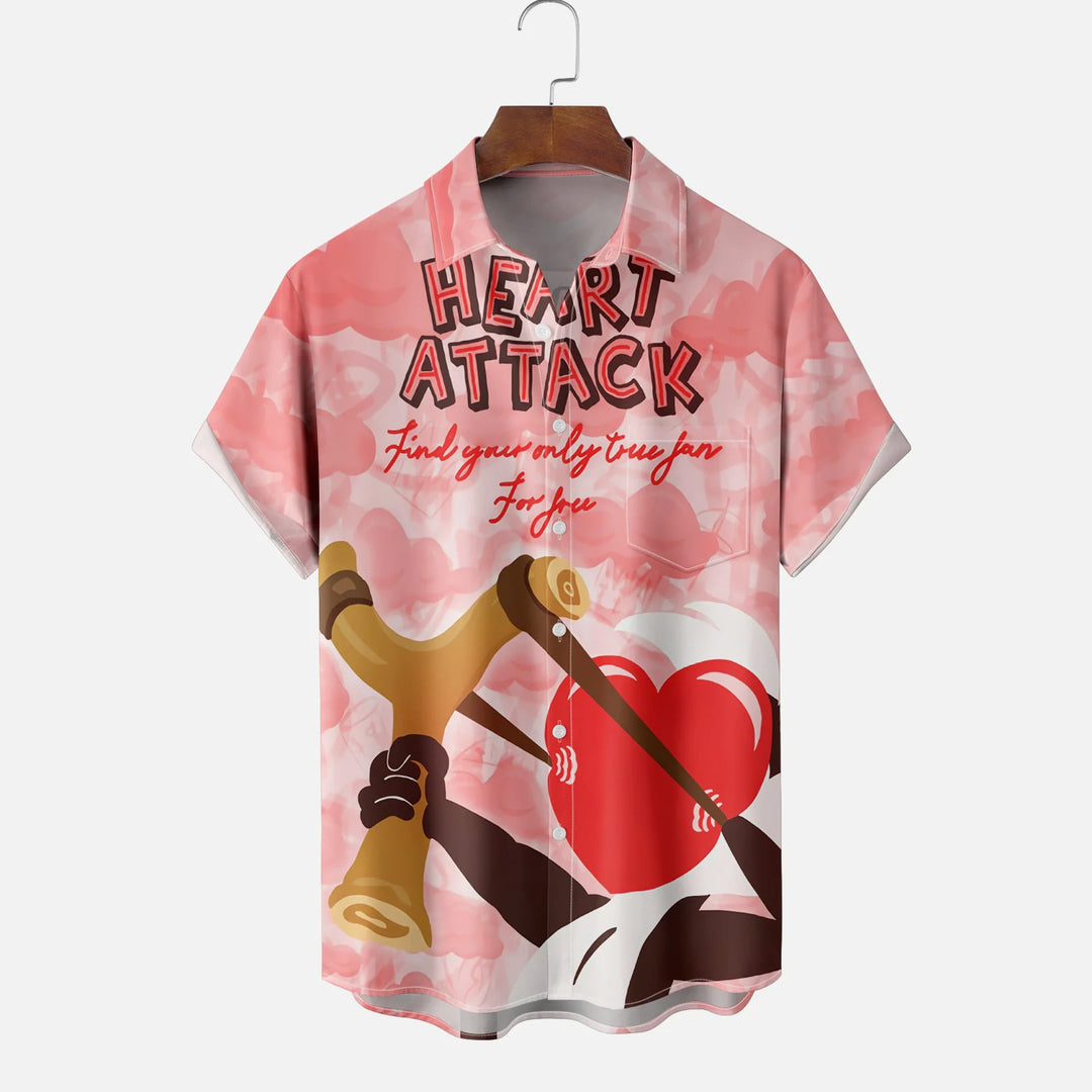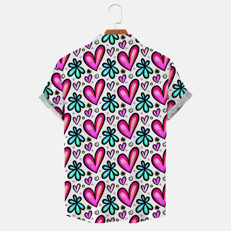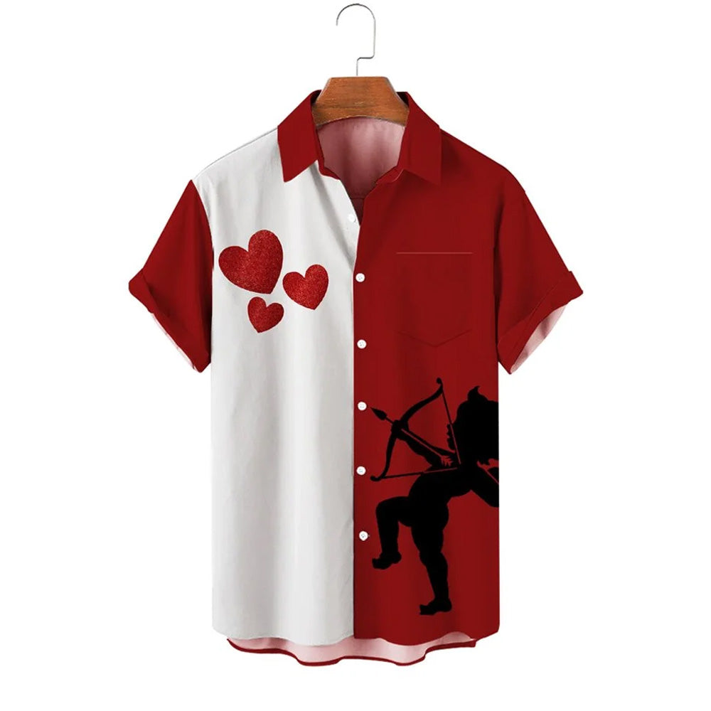 Men's Valentine's Day Heart Print Short Sleeve Shirt 2412008913