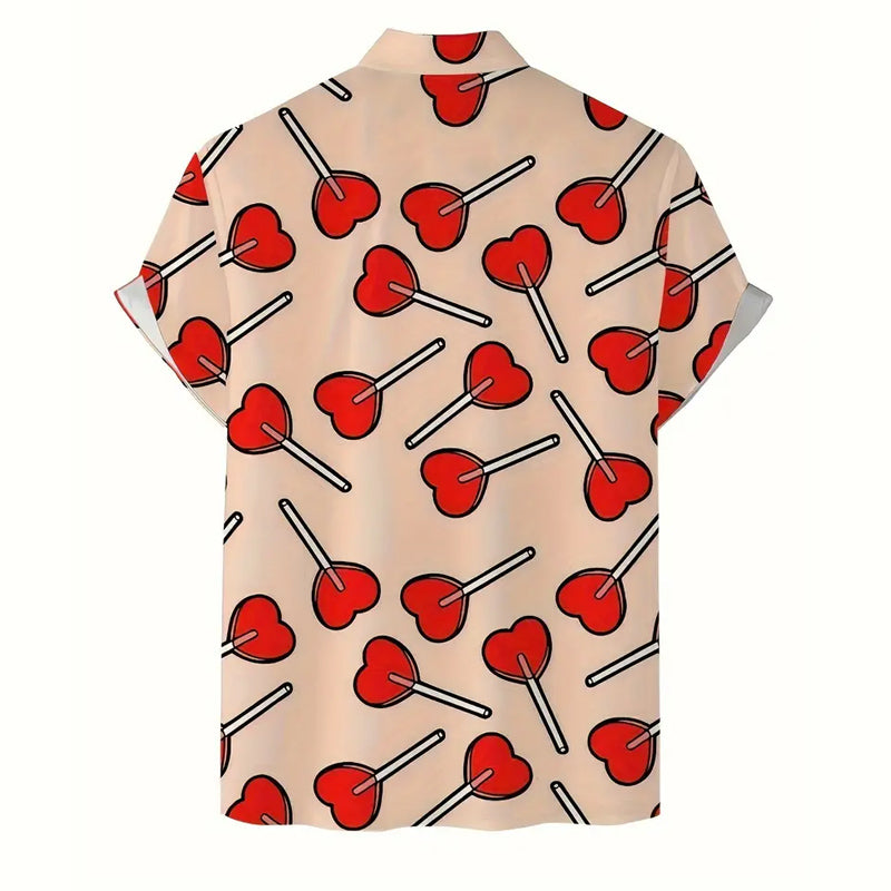 Men's Valentine's Day Love Heart Print Short Sleeve Shirt 2412007775