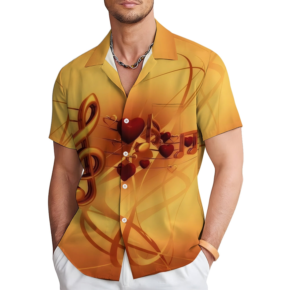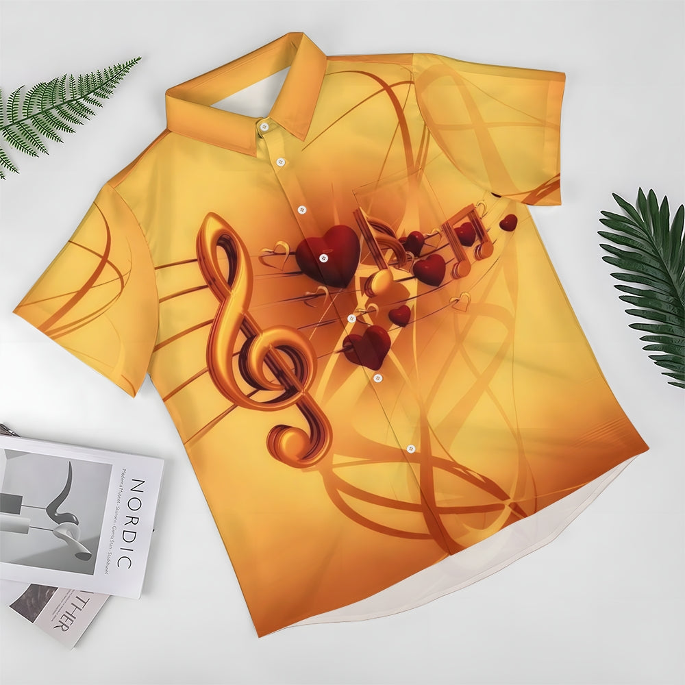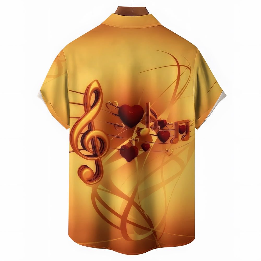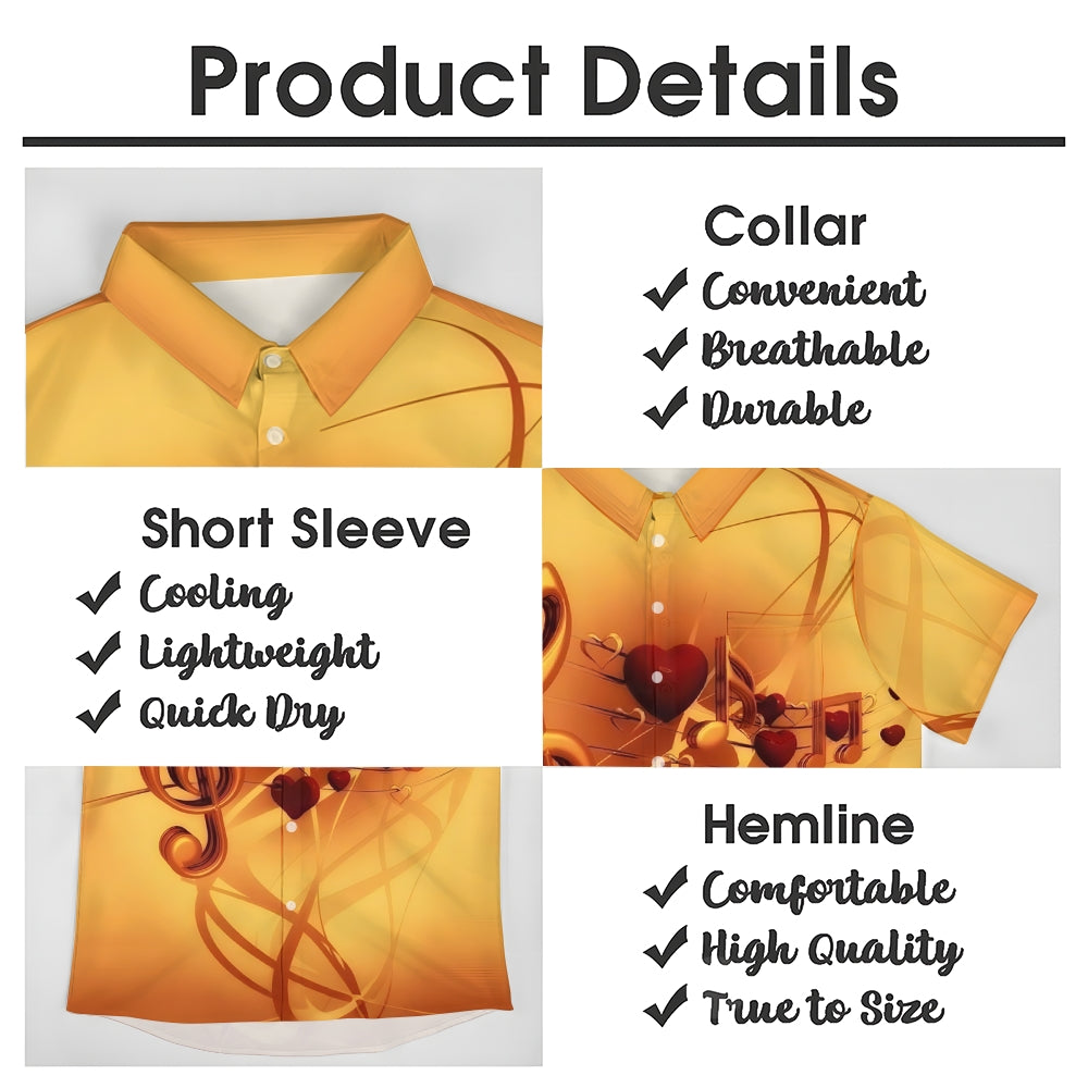 Valentine's Day Love Music Note Print Short Sleeve Shirt 2412008582