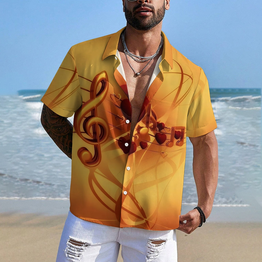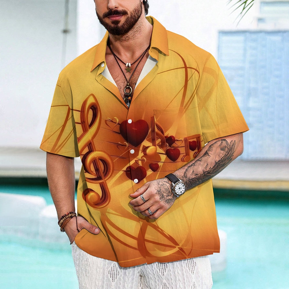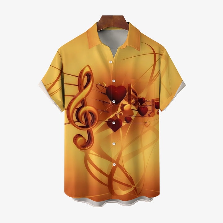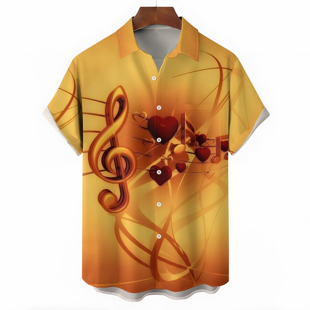 Valentine's Day Love Music Note Print Short Sleeve Shirt 2412008582