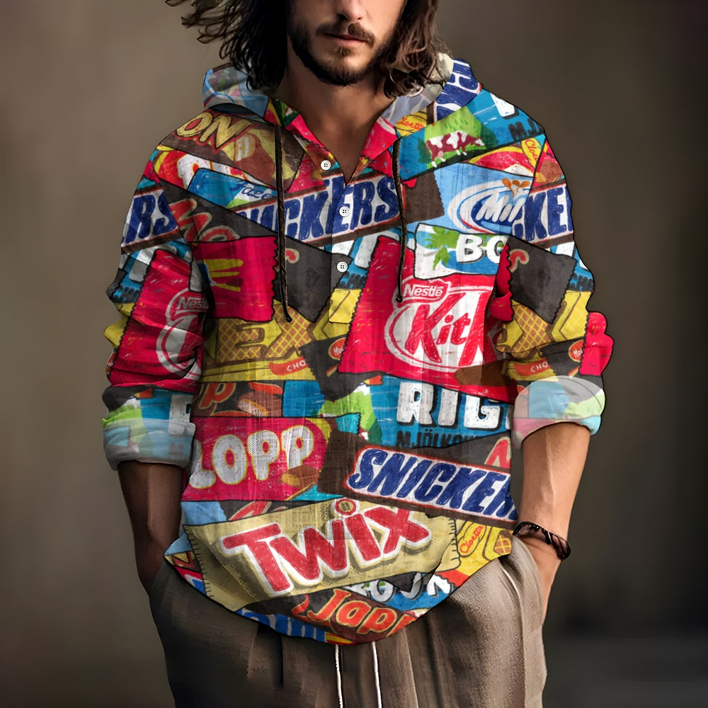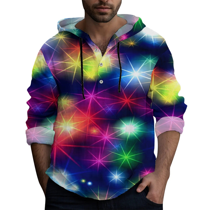 Colorful Glitter Print Hooded Half-Sleeve Shirt 2408002731